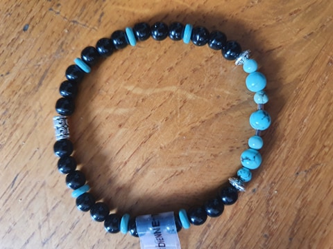 Bracelet Abysses et Lagon en obsidienne et turquoise. 4 et 6mm.