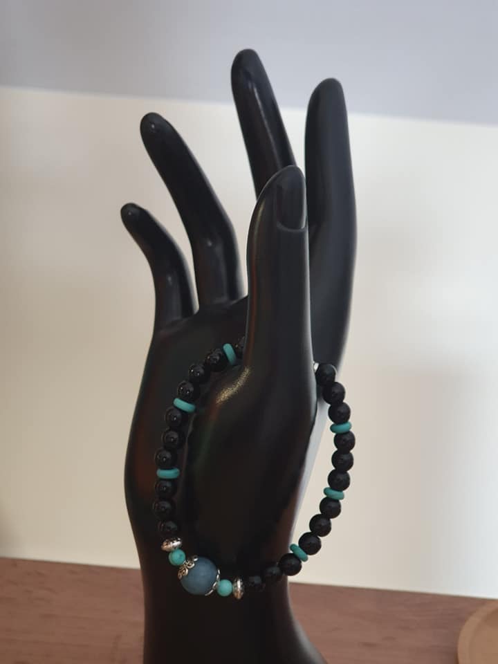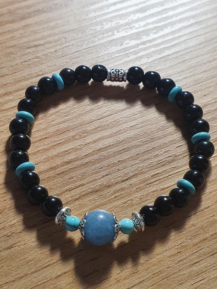 Bracelet Abysses en turquoise, aigue marine et obsidienne. 4, 6 et 10mm.