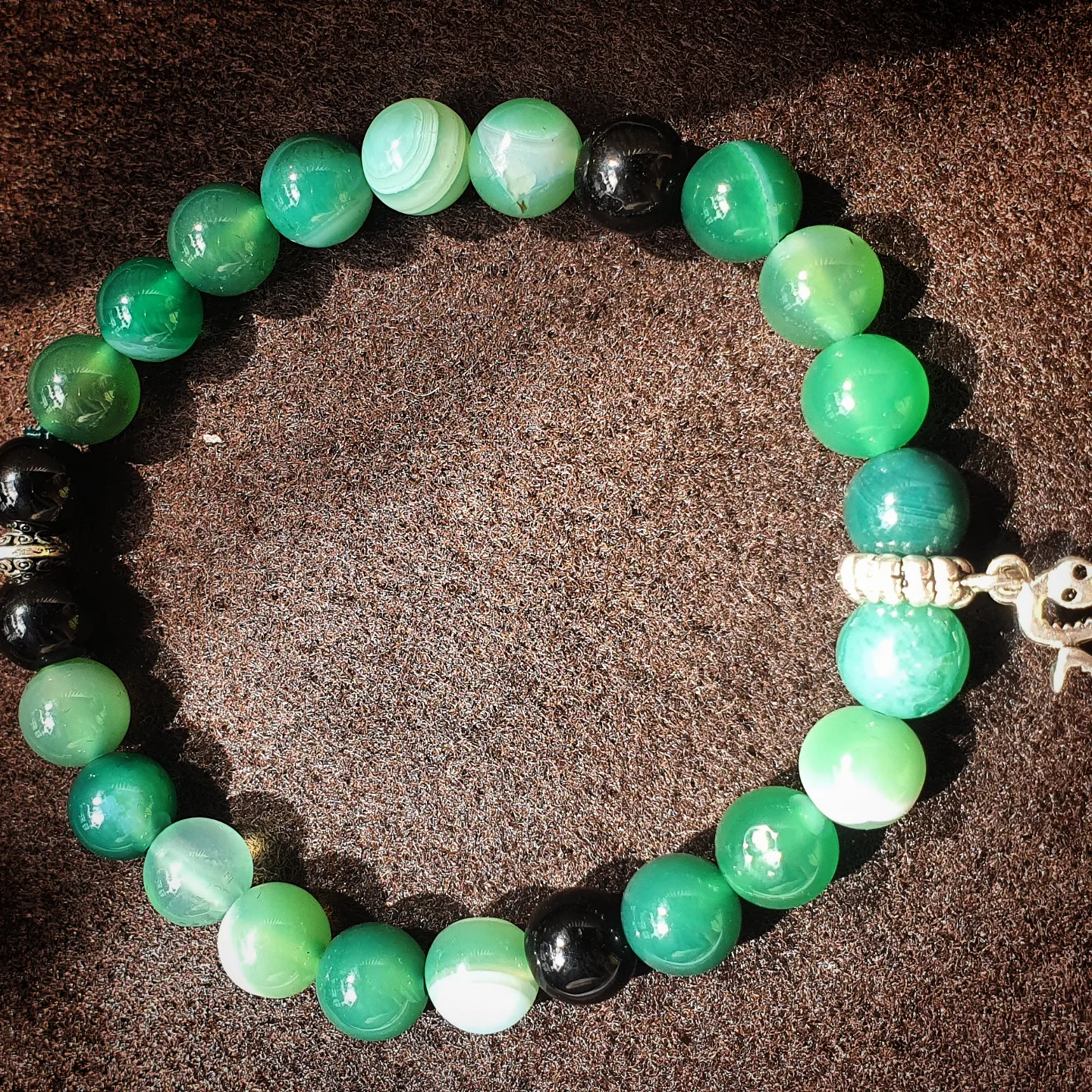 Agate verte et onyx. 8mm.