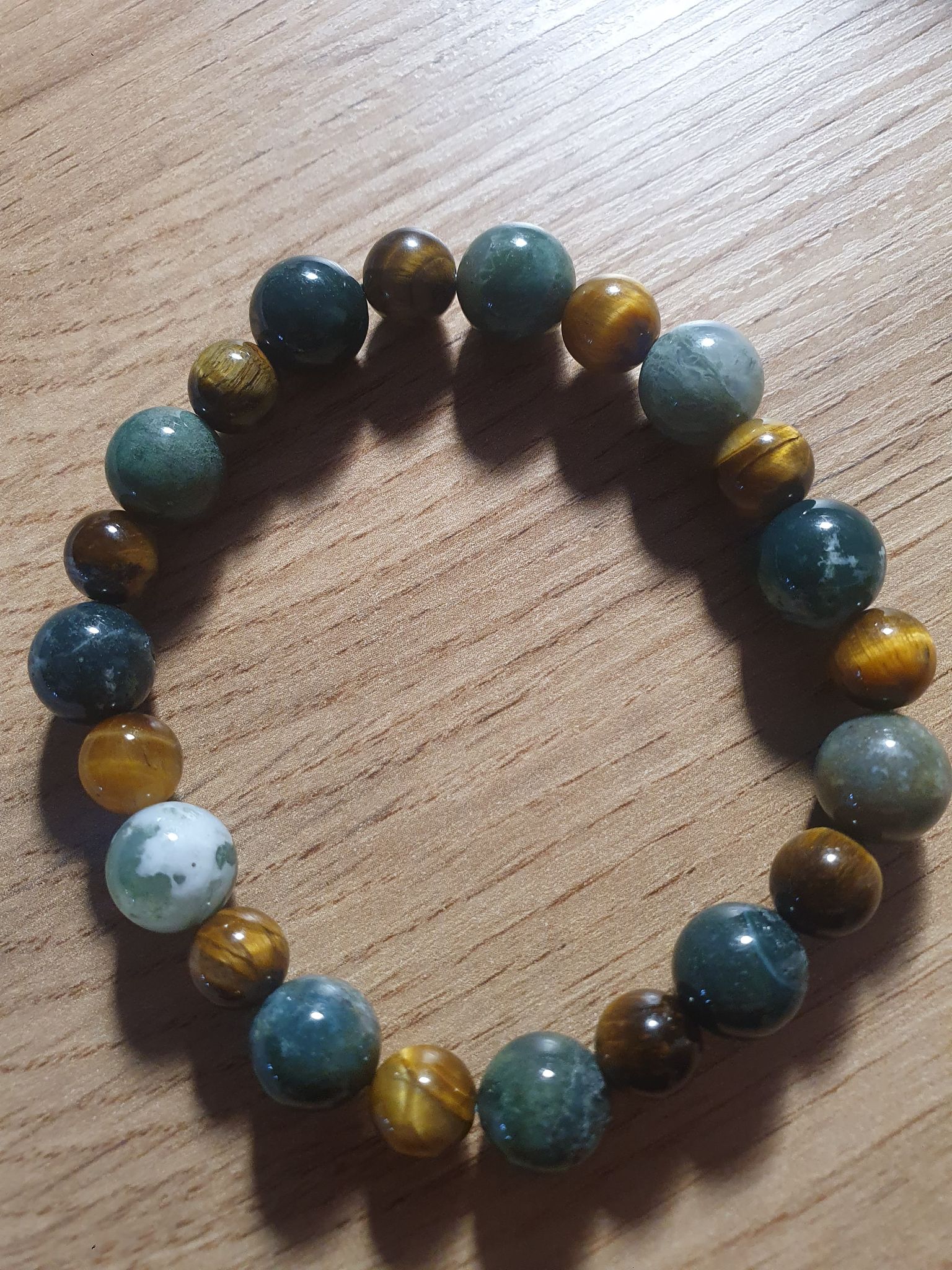 Bracelet Oeil de Tigre et Indian Agathe. Perles 10 et 8 mm.