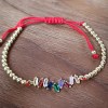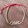 Fil tissé rouge réglable et perles dorées.
