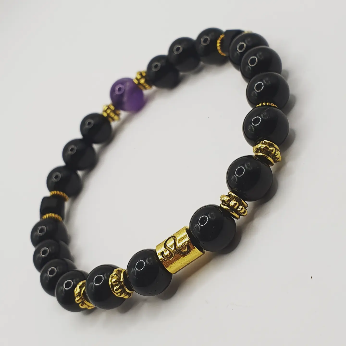 Perles obsidienne, Améthyste. Cristal. 8mm.