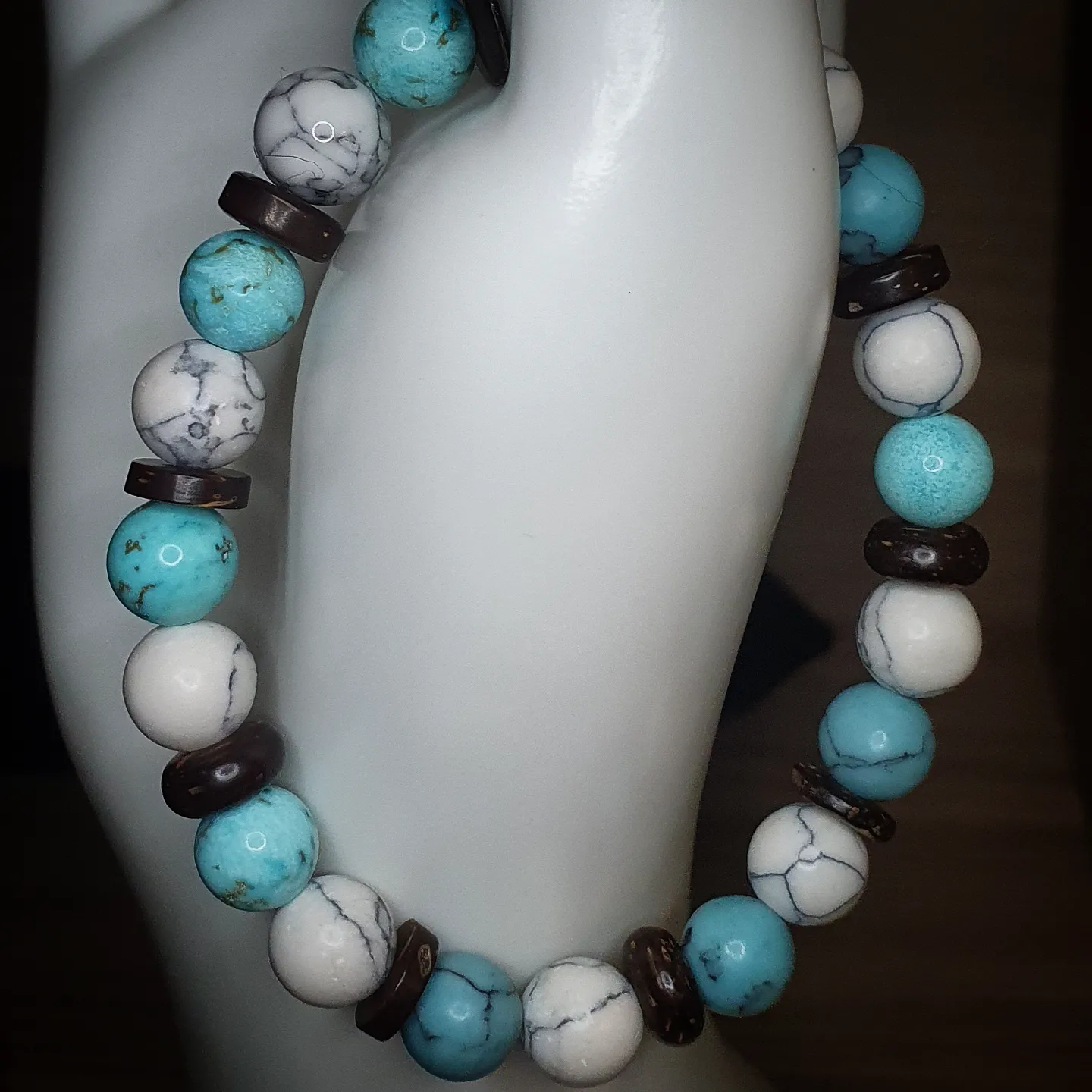 Howlite, bois de coco.