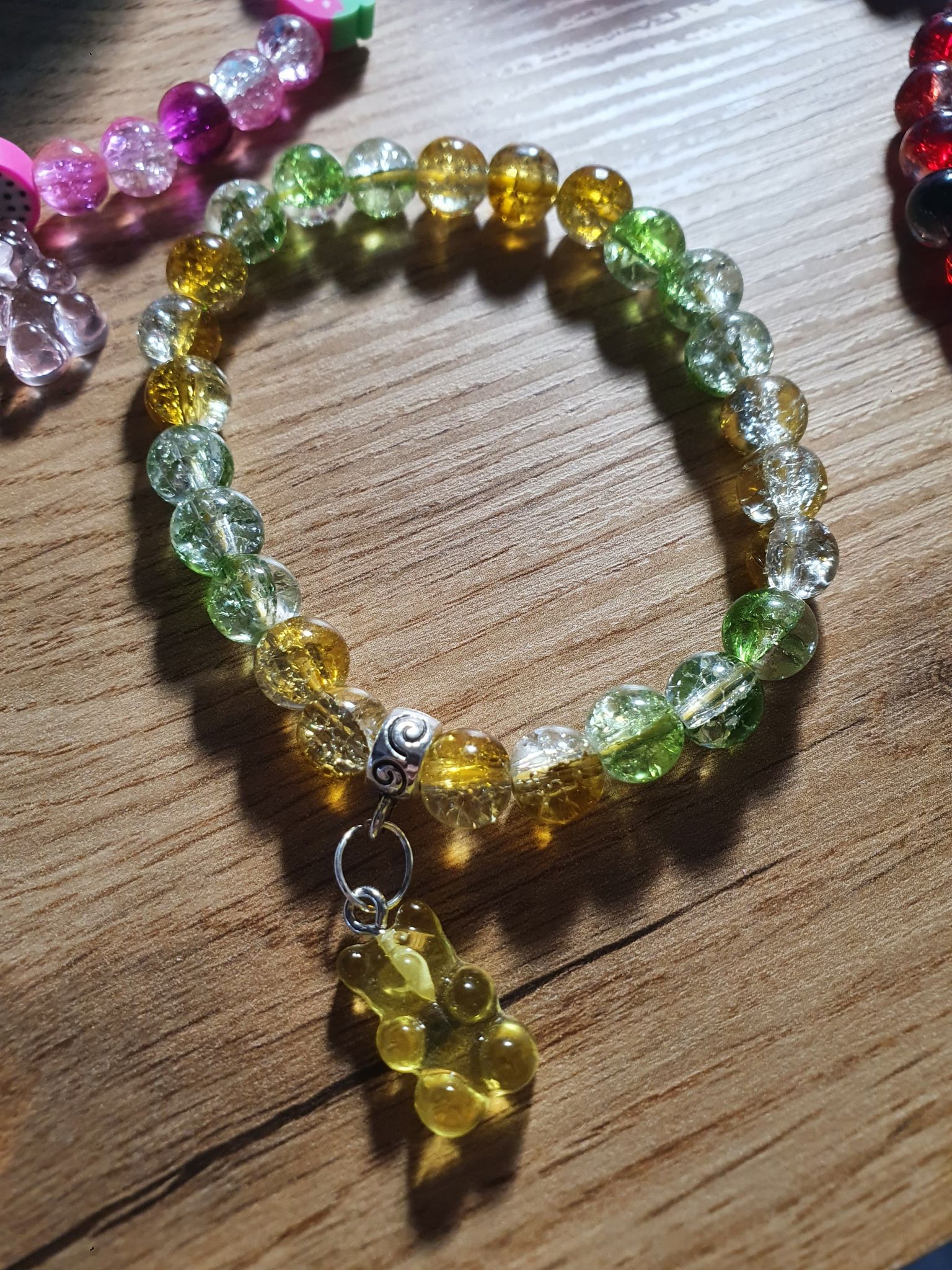 Bracelet Bonbon Ours Jaune en cristal de verre. 8mm.