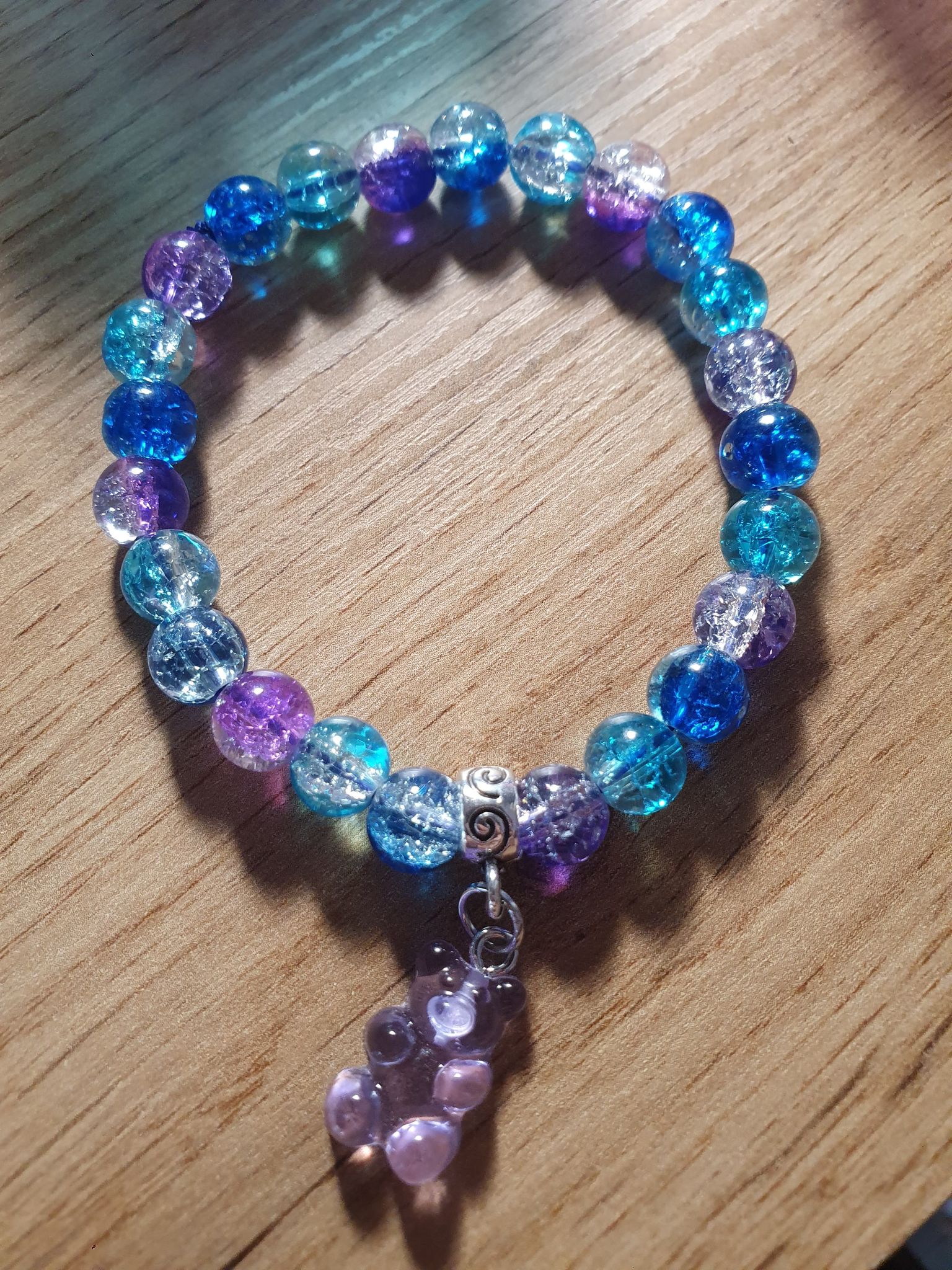Bracelet Bonbon Ours Mauve en cristal de verre. 8mm.