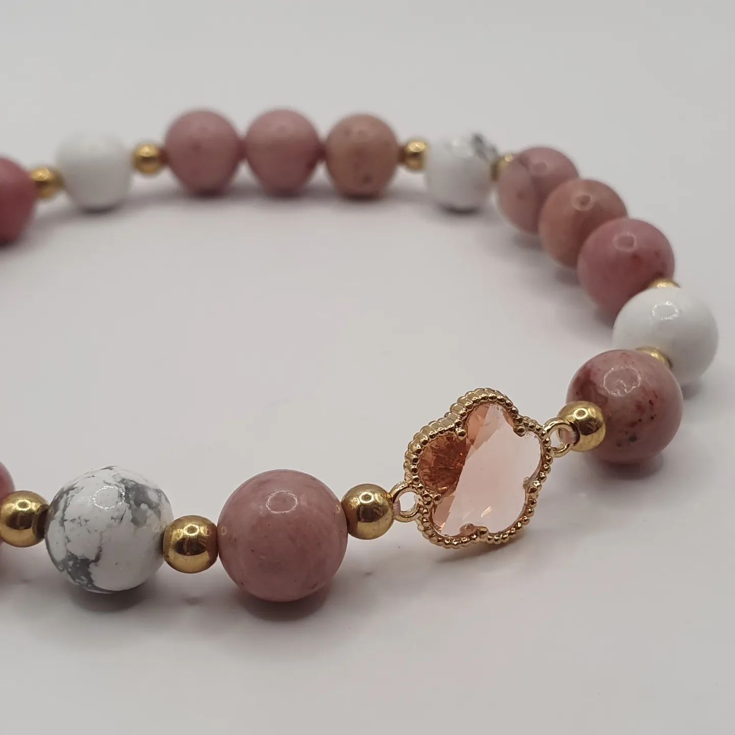 Pierre mixes (opale rose, howlite). 8mm.