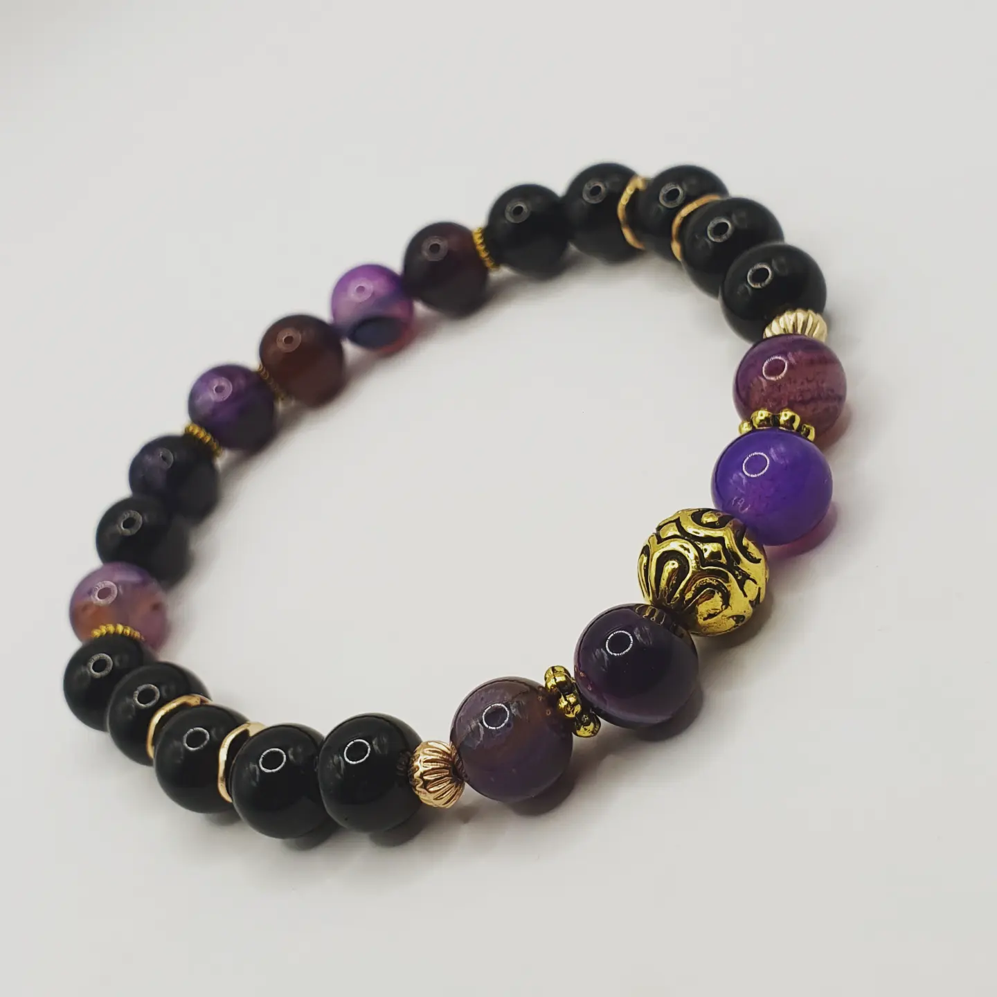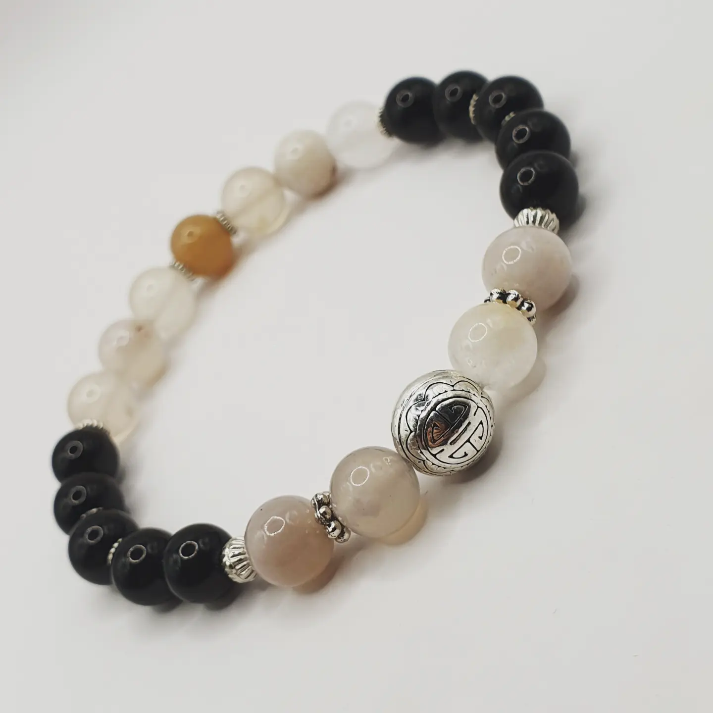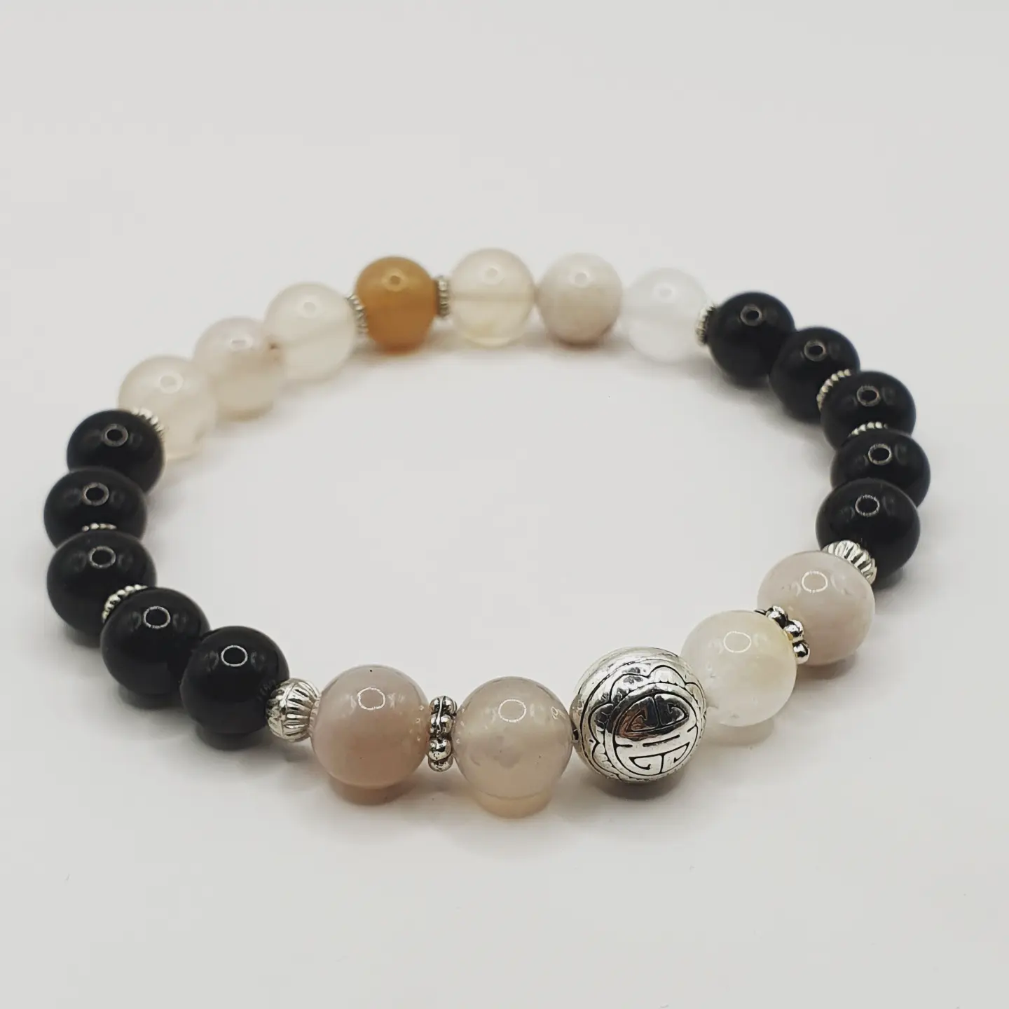 Pierre Obsidienne. Agate fleur de cerisier. 8mm.