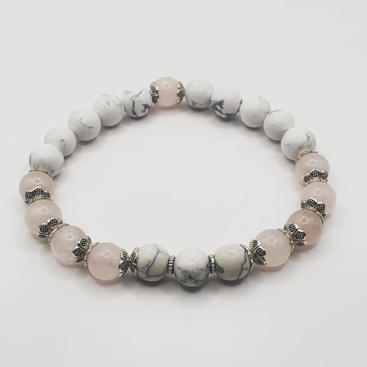 Howlite et quartz rose.
