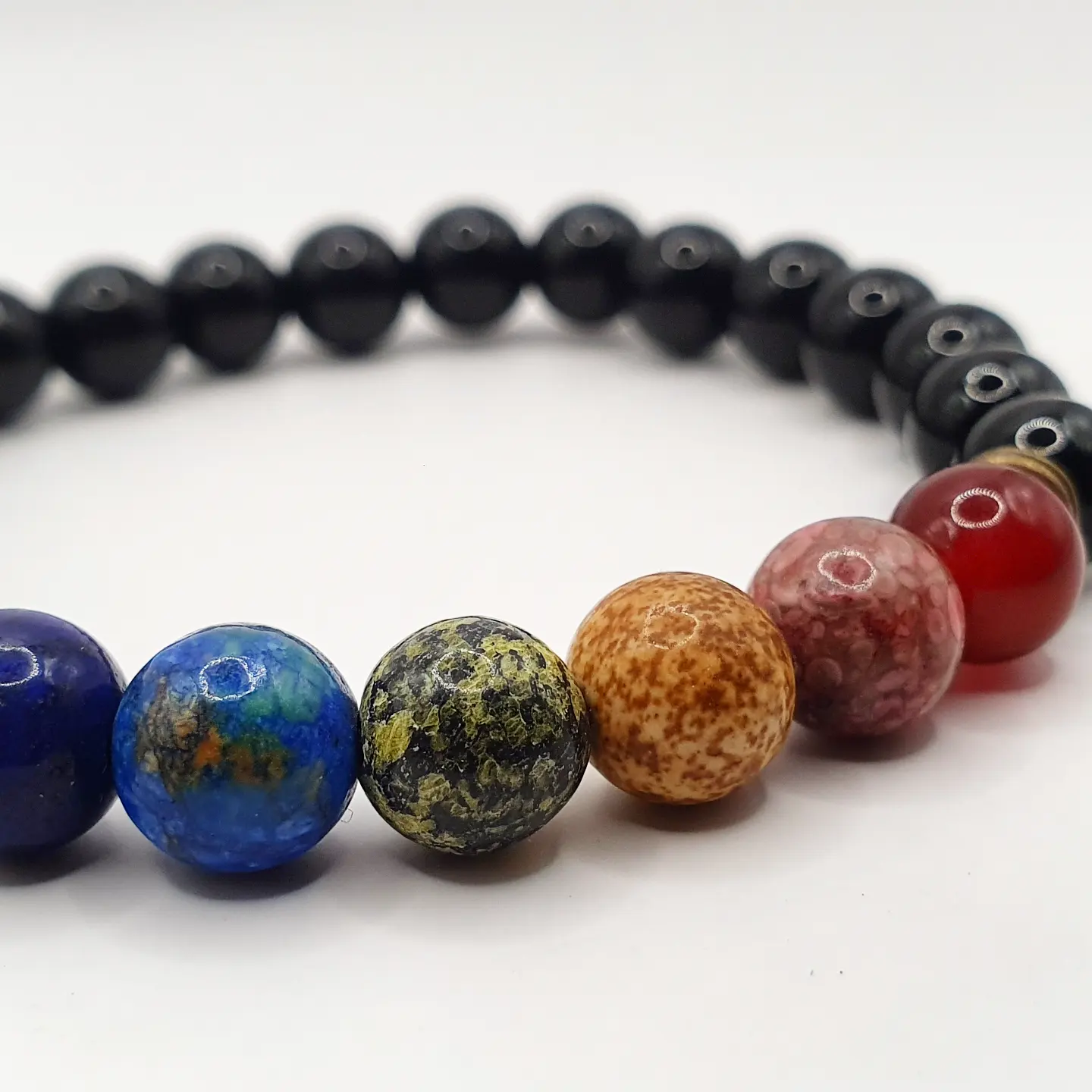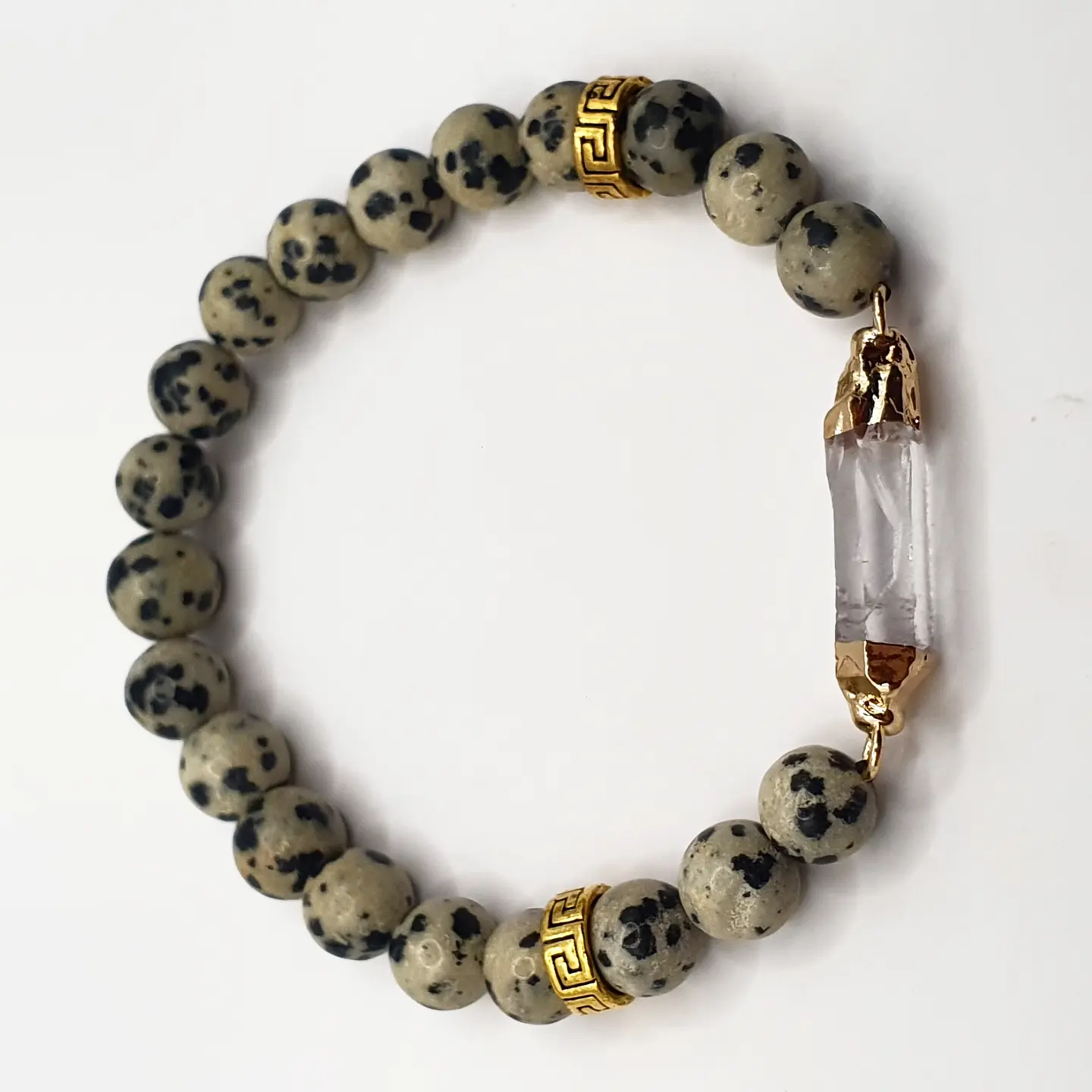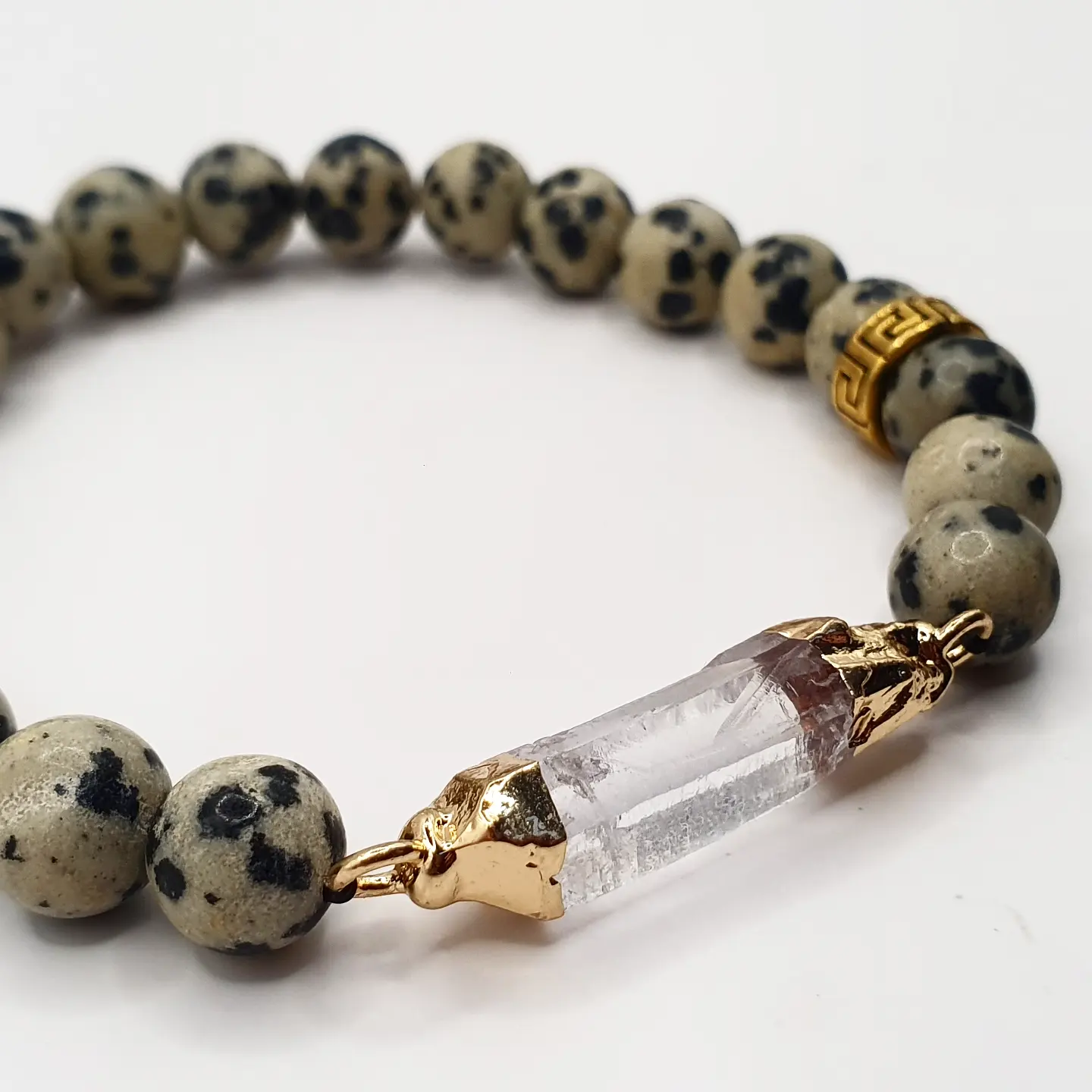 Perle naturelle Jaspe dalmatien et quartz. 8mm.