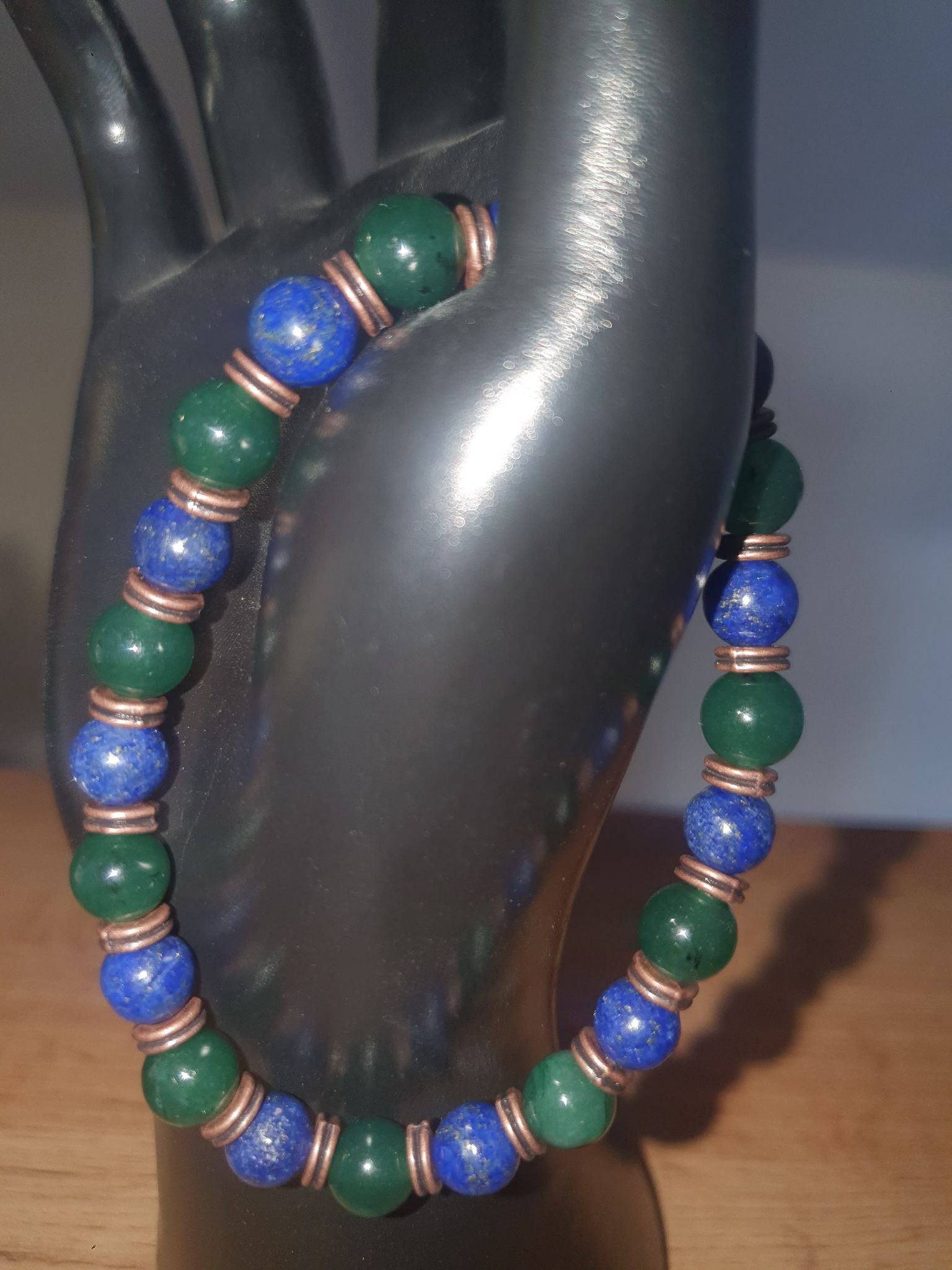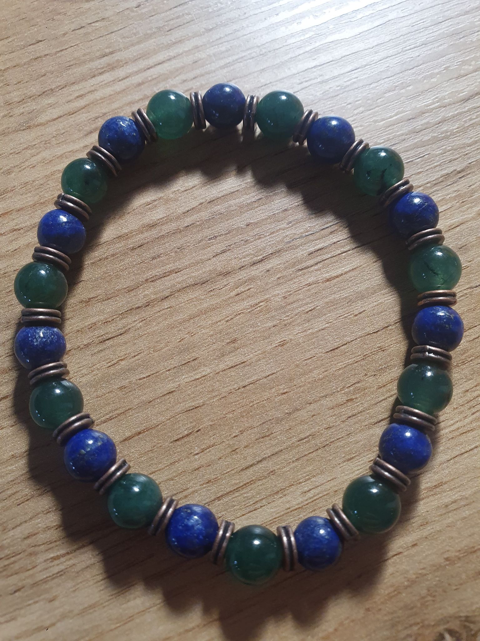 Bracelet de Maât en lapis lazulis et jade oleagineuse. 8mm.