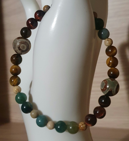 Jaspe paysage, dzi, agate mousse, oeil de tigre. 4, 6 et 10mm.