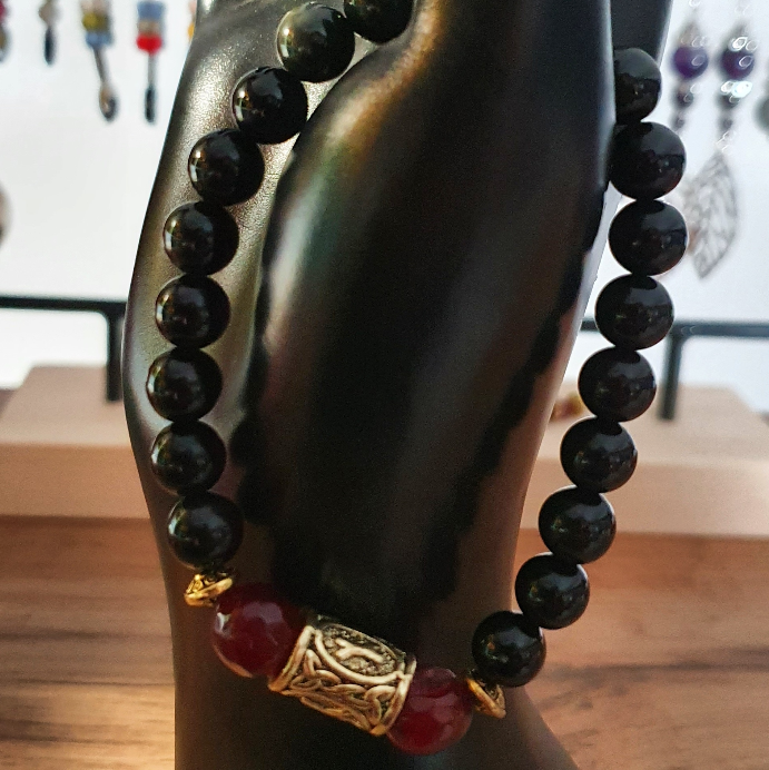 Obsidienne et calcedoine 8mm.