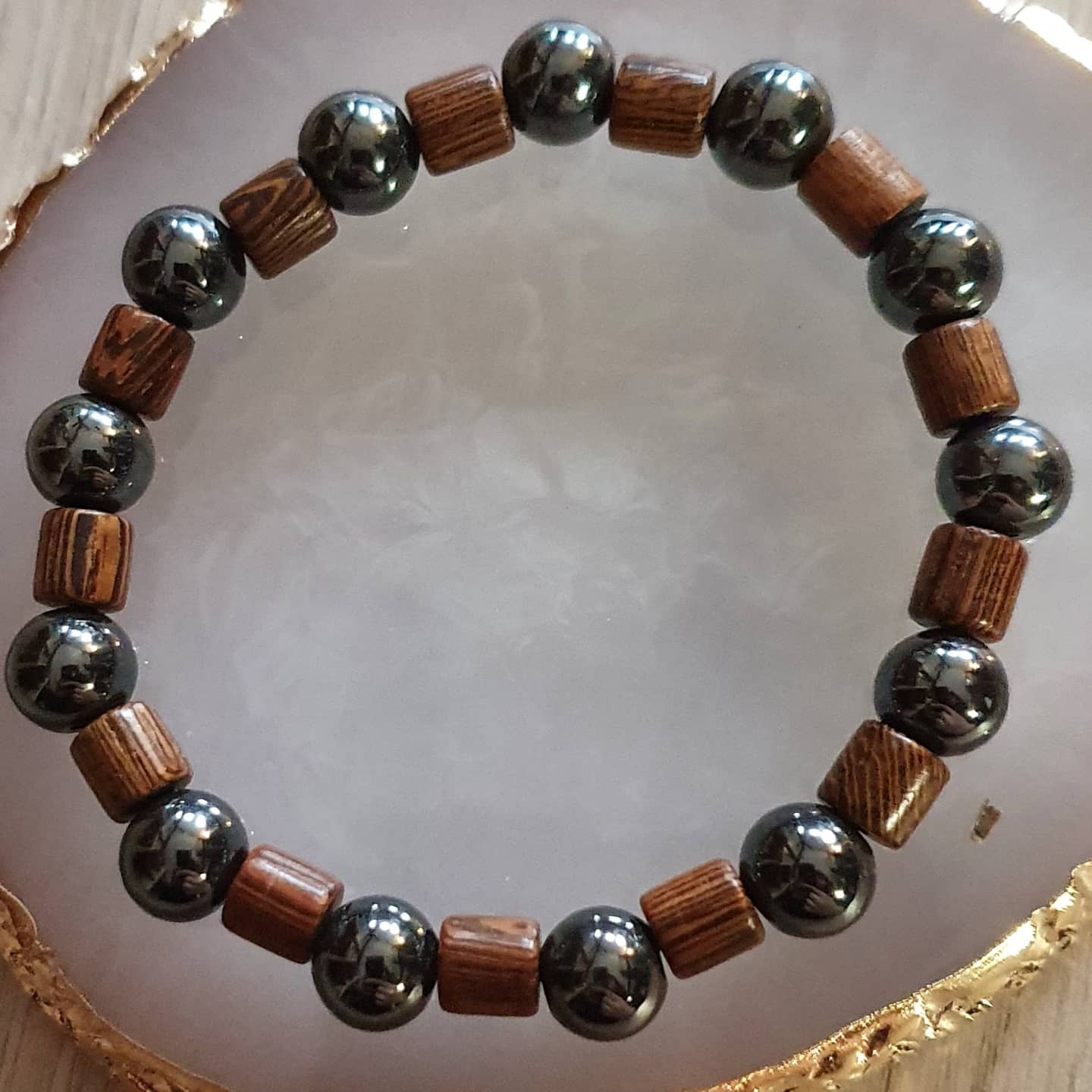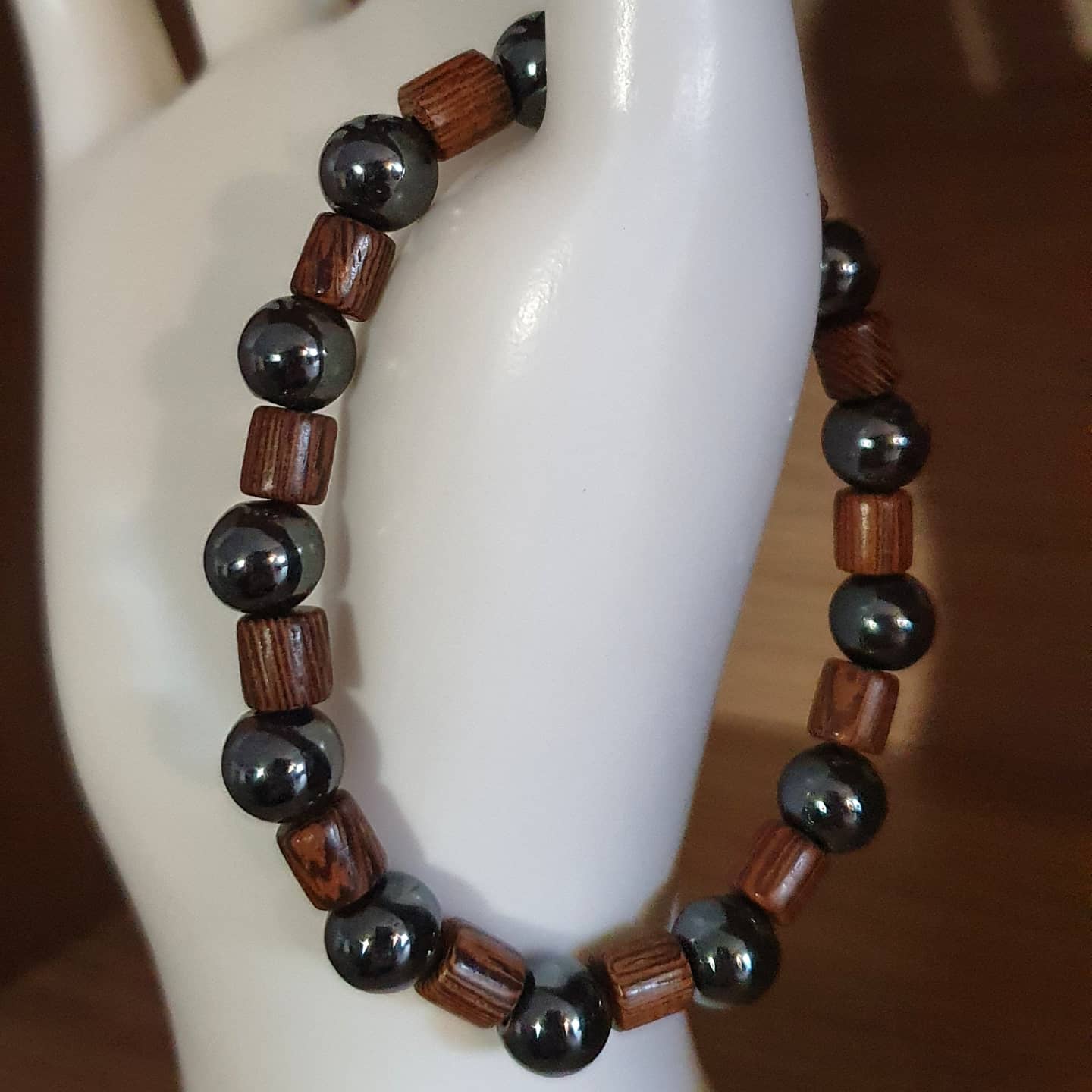 Bois et hématite. 8mm.