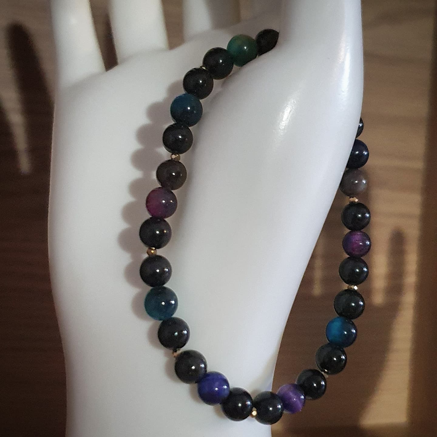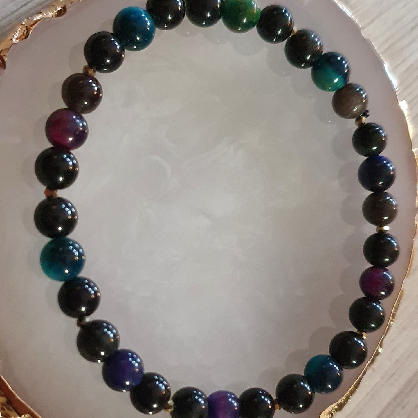 Cristal et oeil de tigre de synthèse. 6 et 2mm.