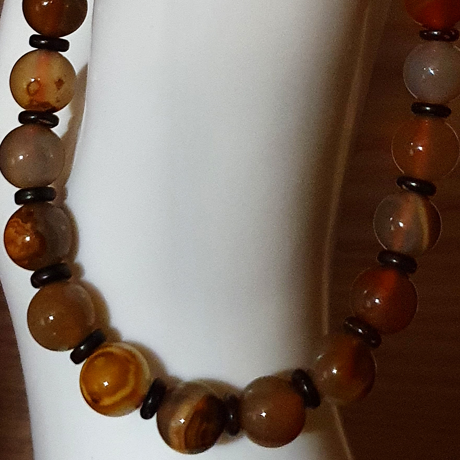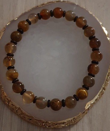 Agate peau de tigre et bois de coco. 8mm