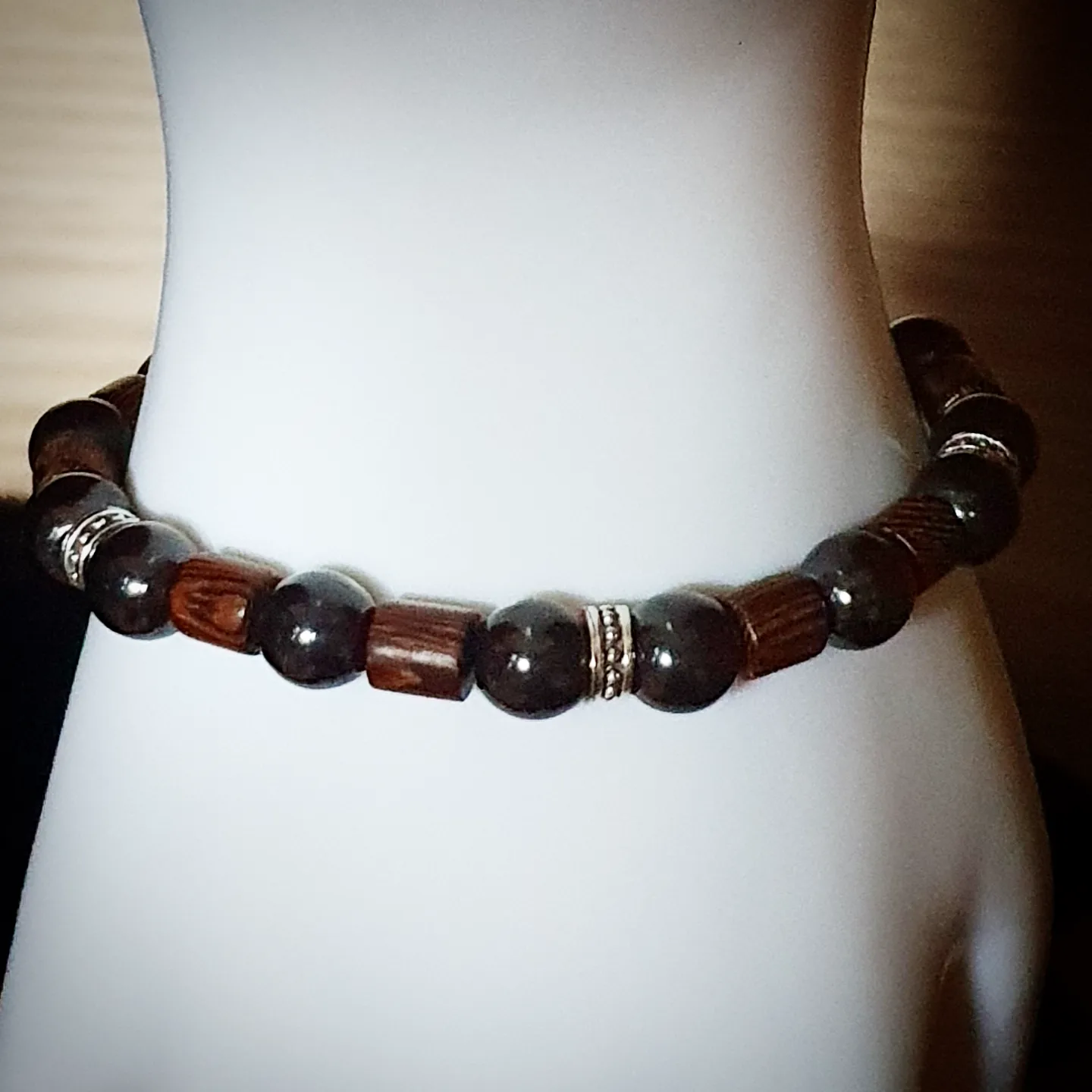 Obsidienne, bois.