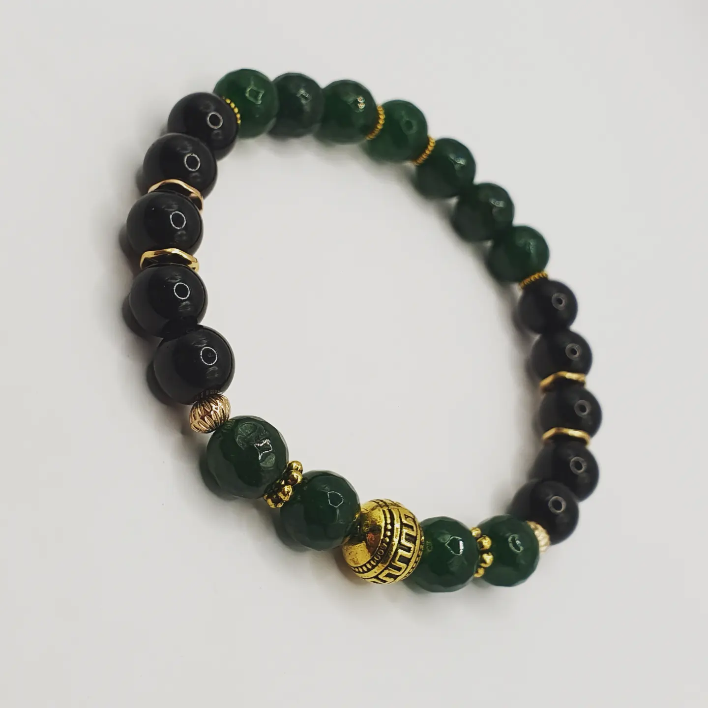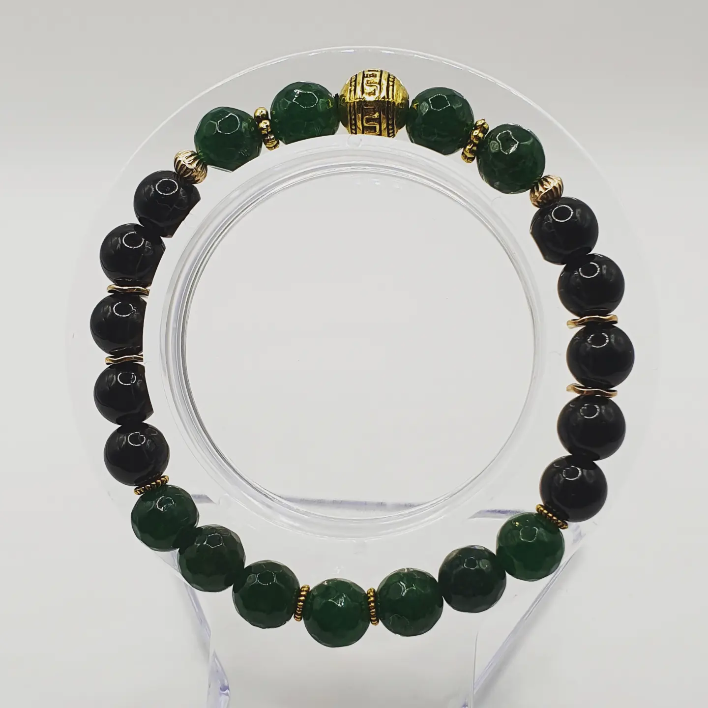 Obsidienne. Jade Émeraude facettée. 8mm.