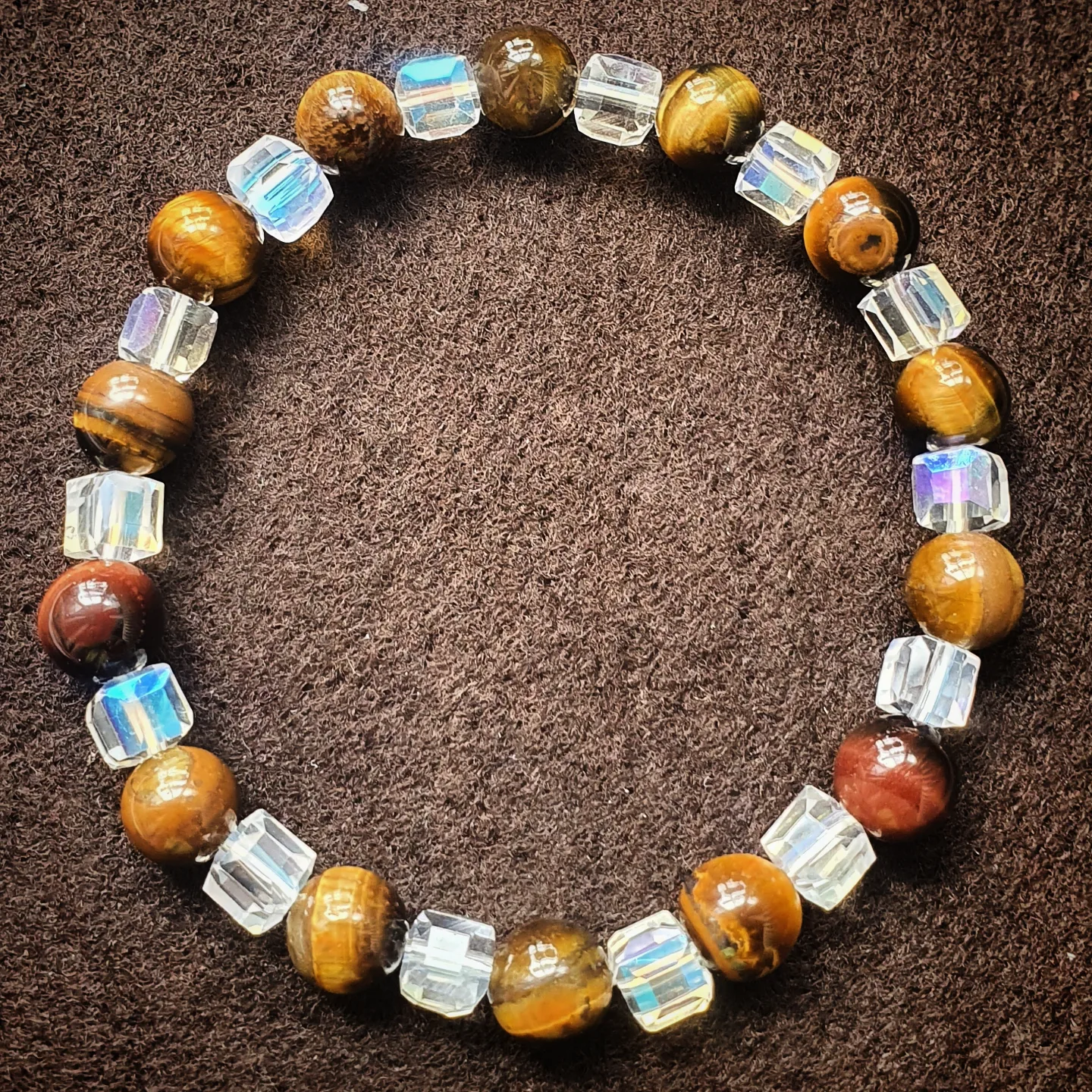 Oeil de tigre et cristal. 8mm.