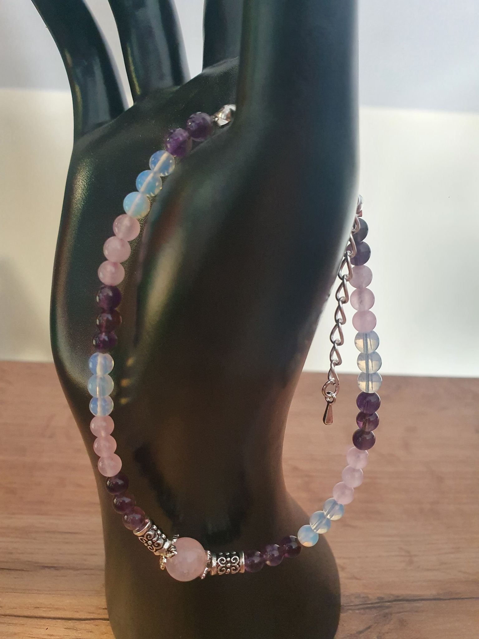 Bracelet Le Temps d’un Souvenir en Quartz rose, Opale et Améthiste. 4 et 8mm.