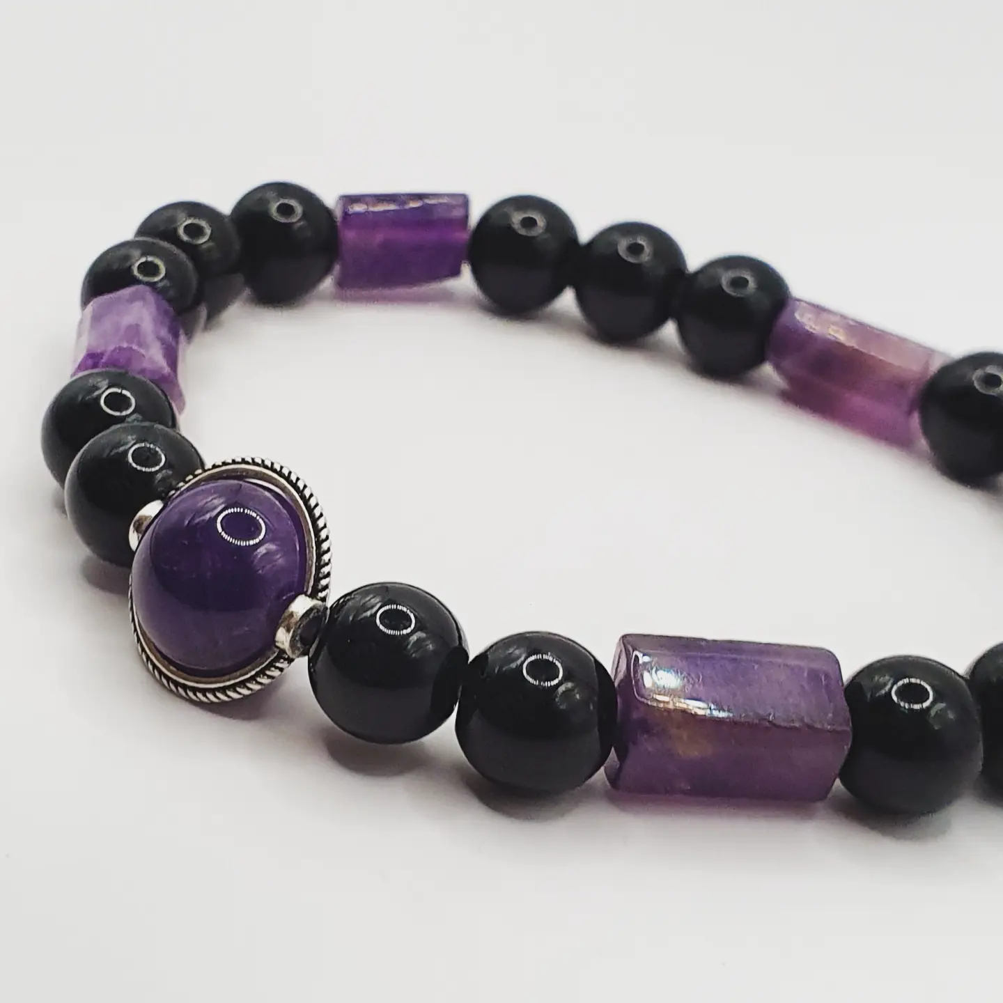 Perles naturelles. Améthyste et obsidienne. 8mm.
