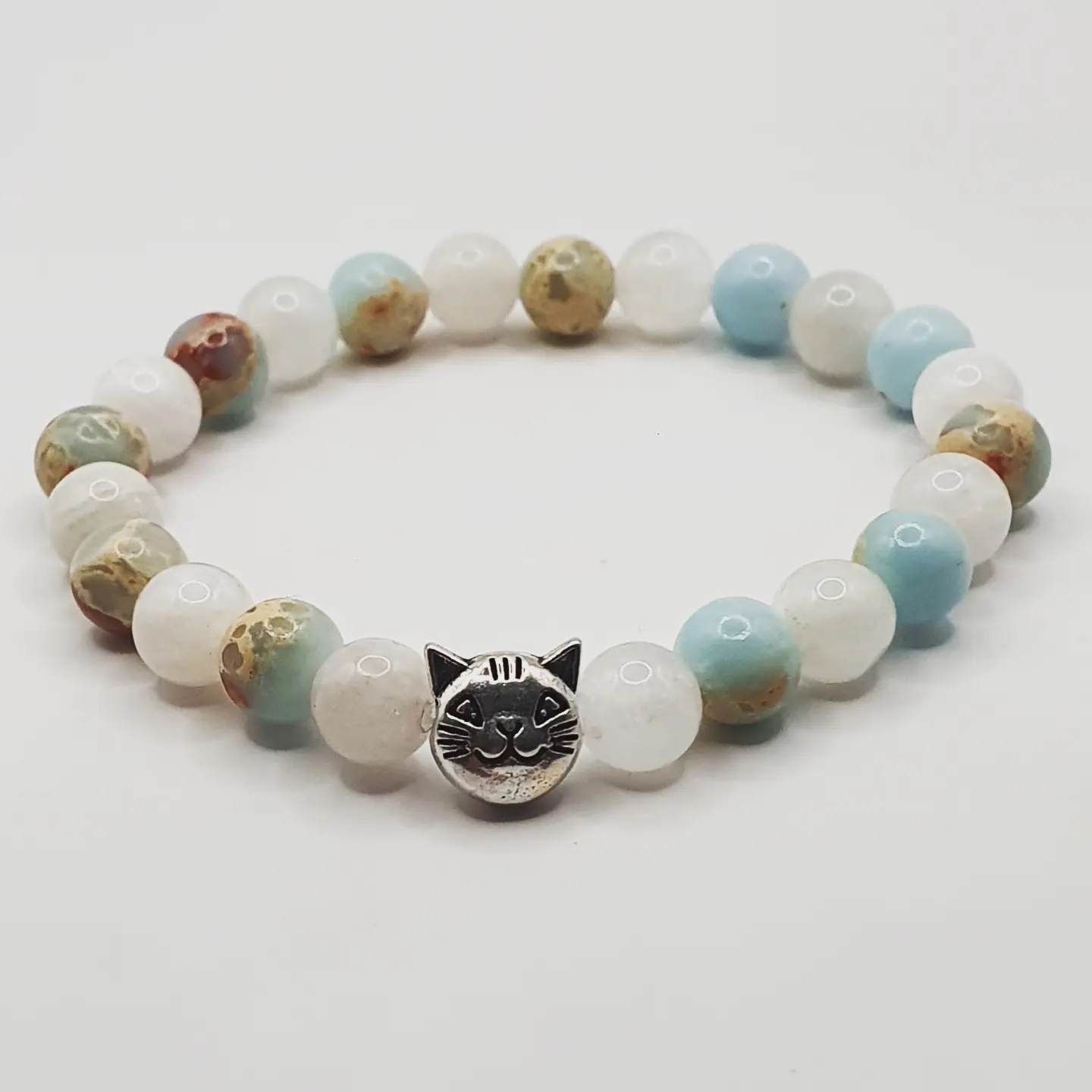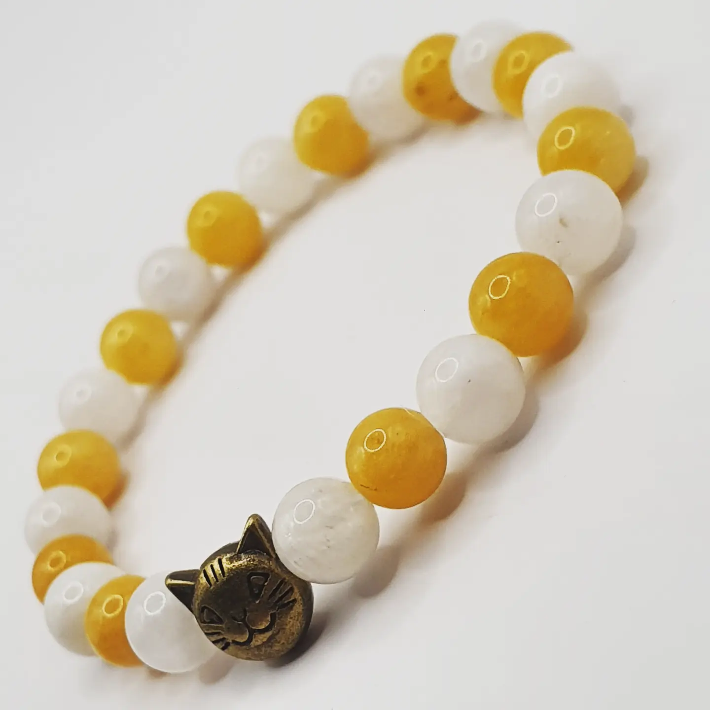 Perles pierre de lune et cire d’abeille.