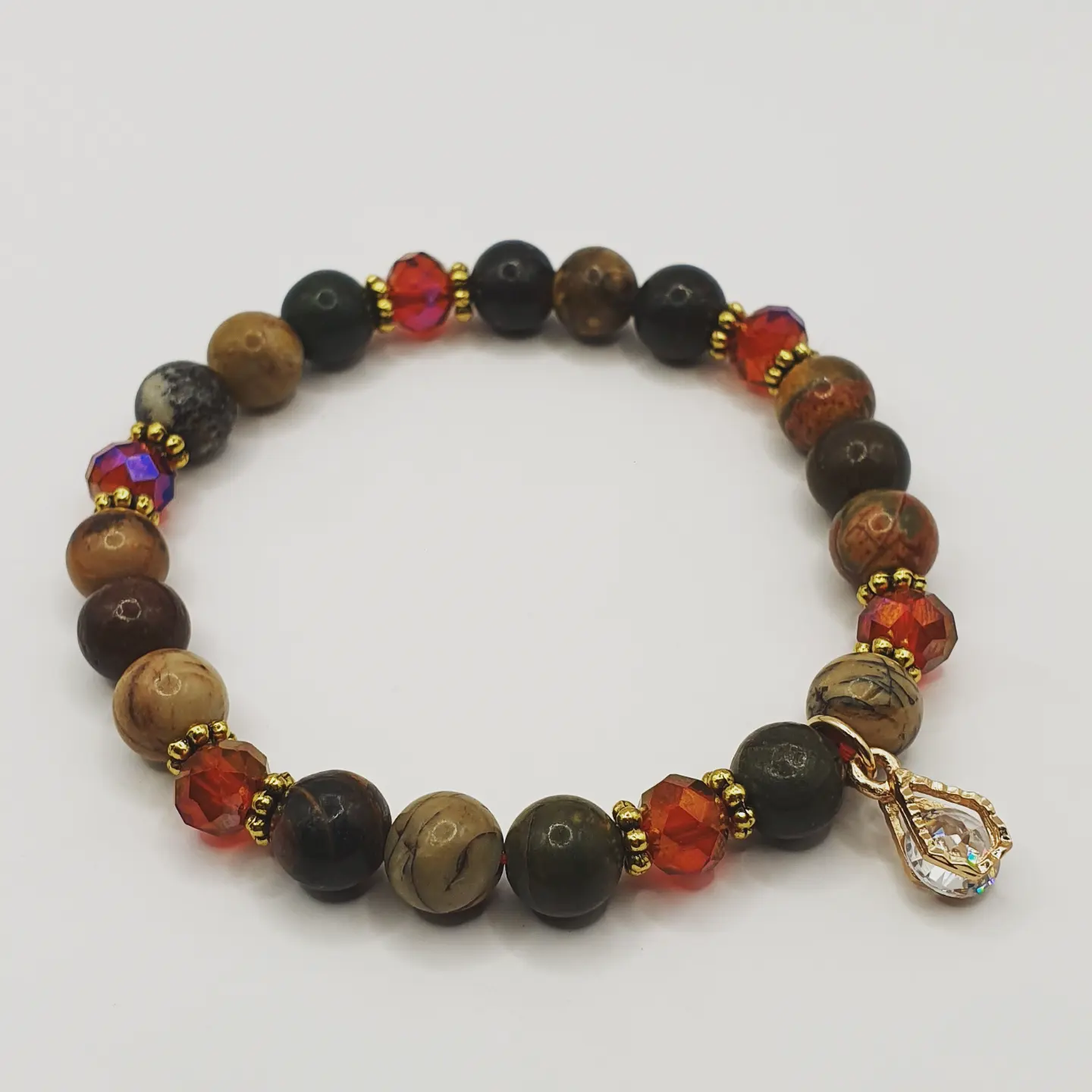 Perle pierre bois fossilisé. Cristal. 8mm.