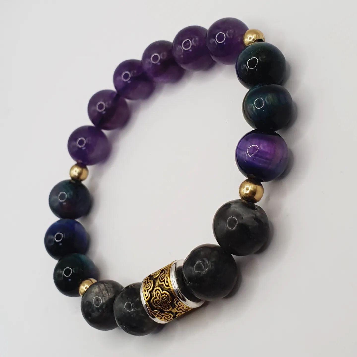 Pierres mixées (améthyste, labaradorite, oeil de tigre aurora). 10mm.