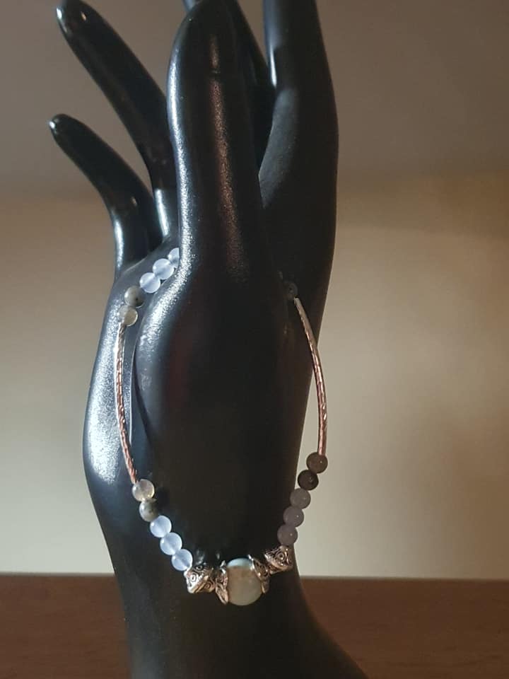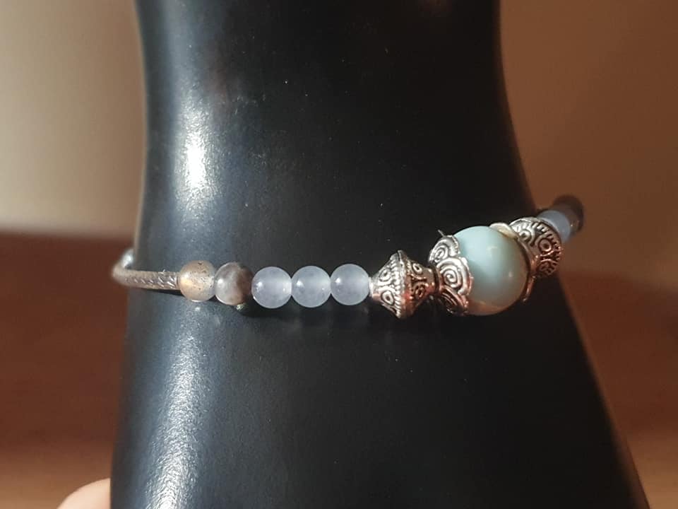 Bracelet Noblesse Discrète en aigue marine, labradorite et pierre de Shushan. 4, 10mm.