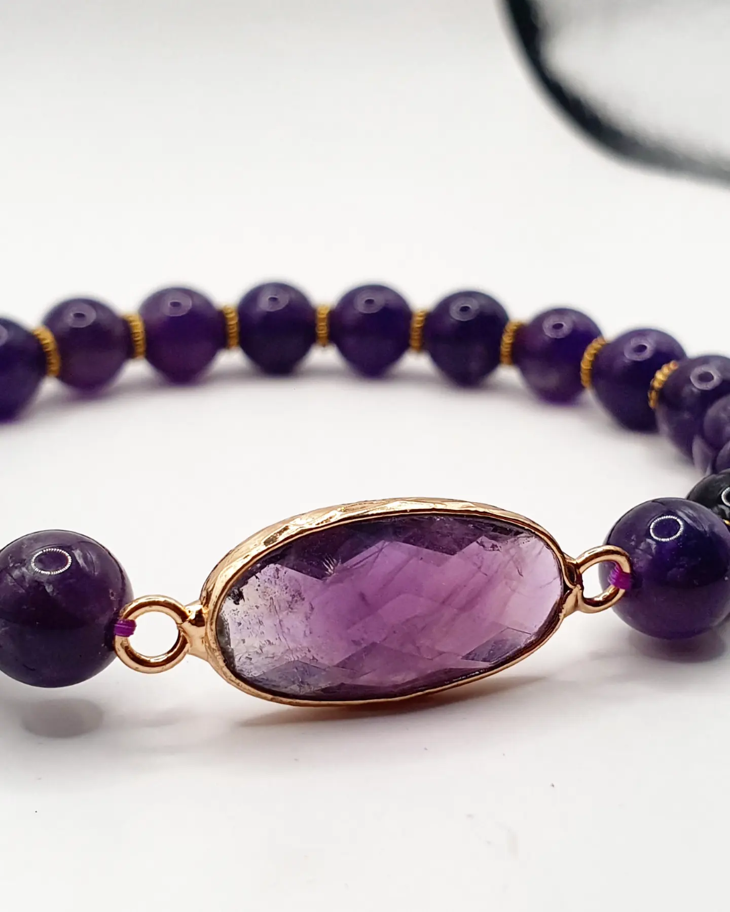 Perle naturelle Sea sédiment teintée et Rhodonite. 8mm.