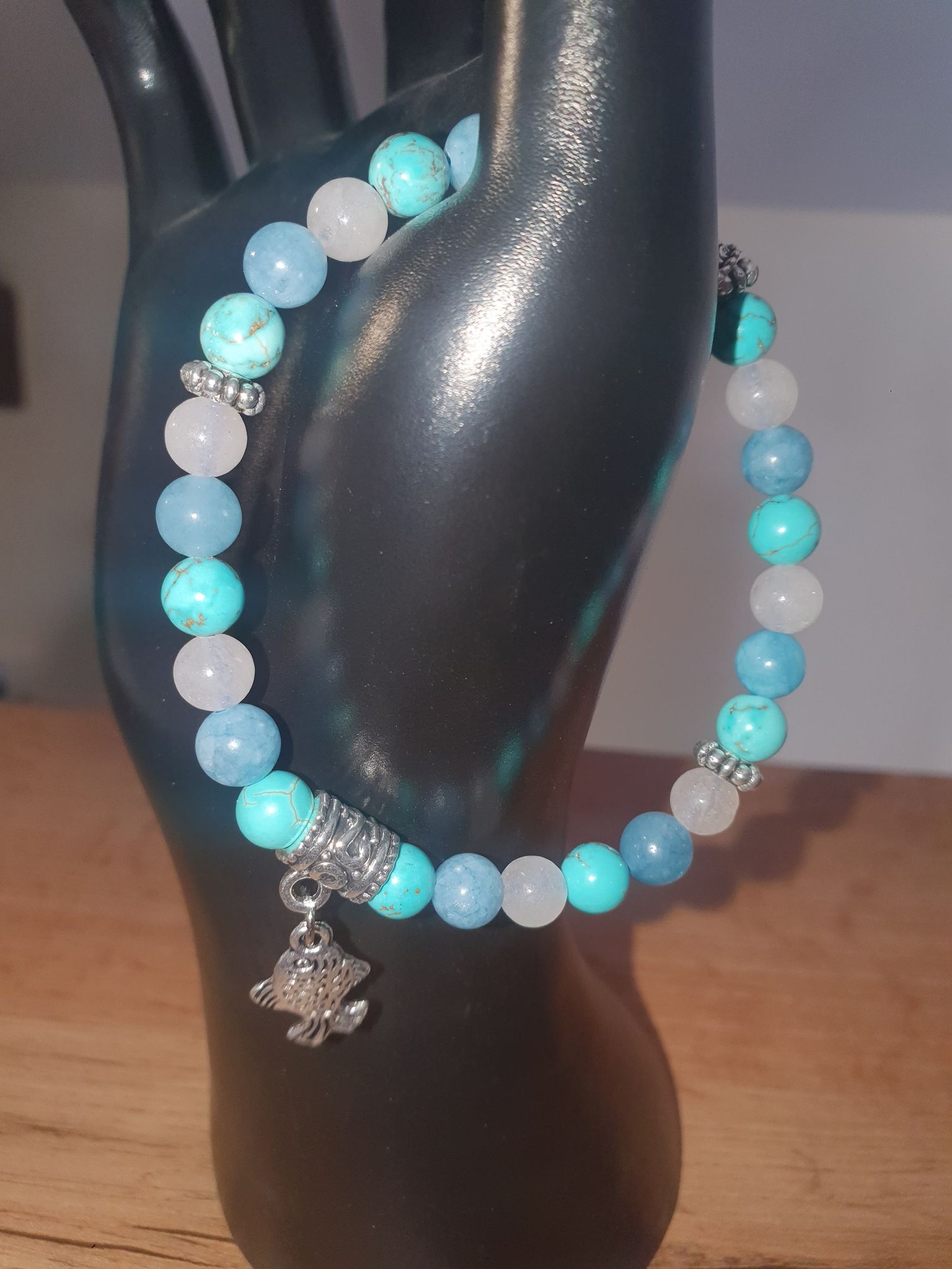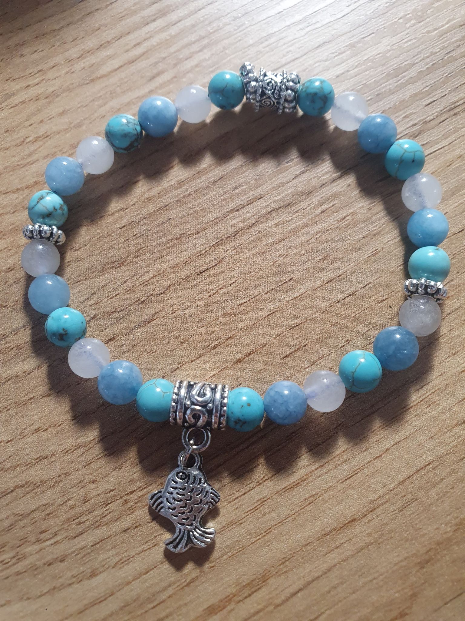 Bracelet Poisson de la Mer en turquoise, aiguemarine et opale. 6mm.