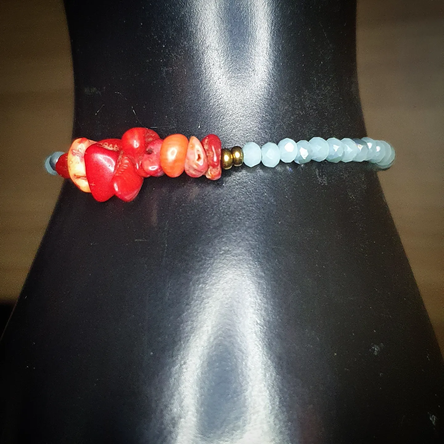 Cristal et corail. 3-4mm et chips.
