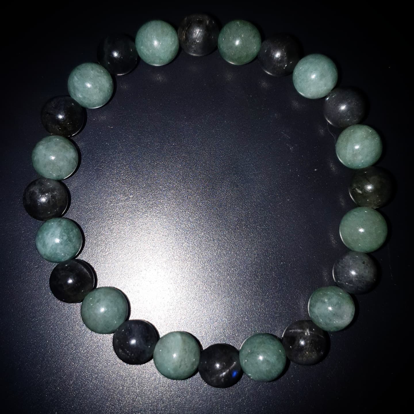 Labradorite bleue AA, Burmese Jade. 8mm.