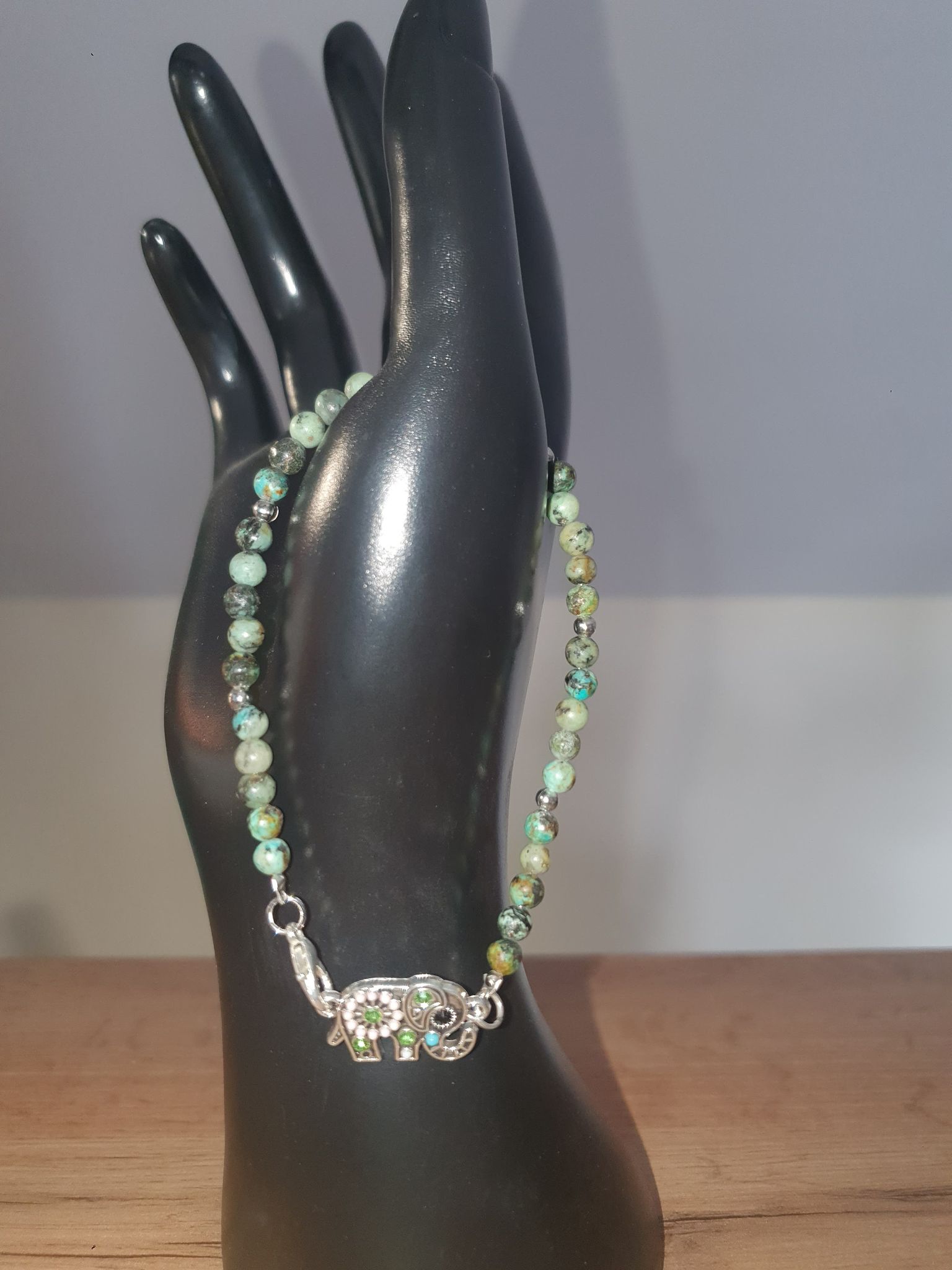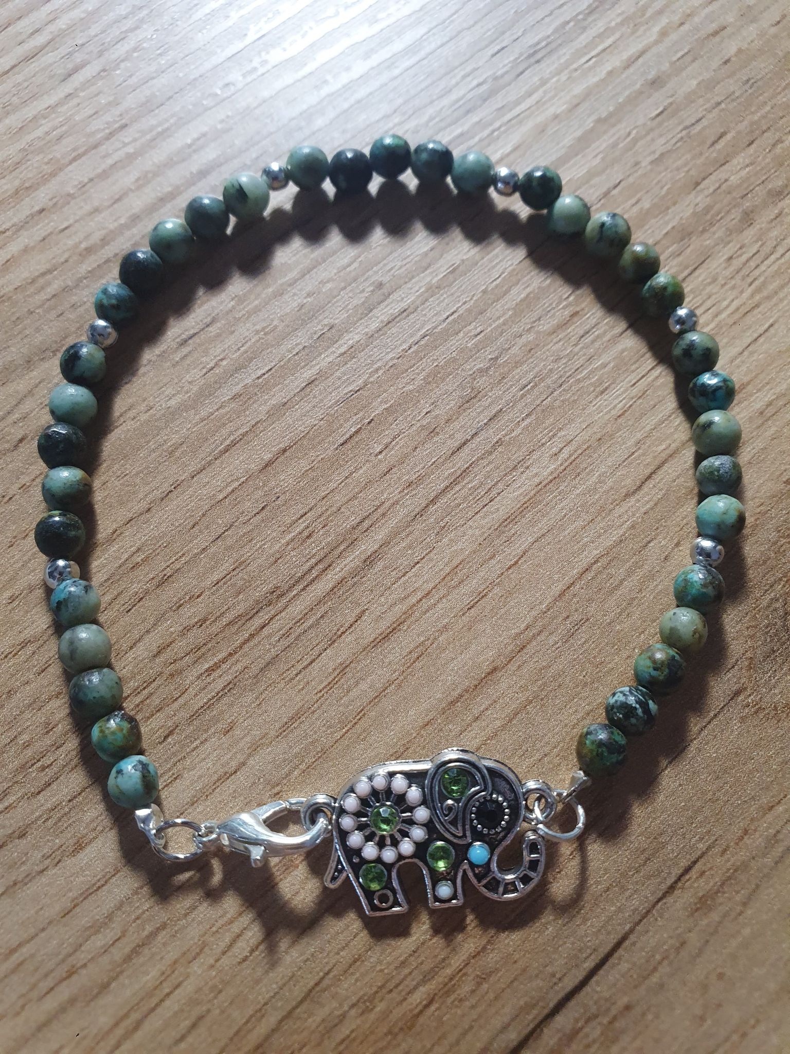 Bracelet Sur la Piste de l’Éléphant en turquoise africaine. 4mm.