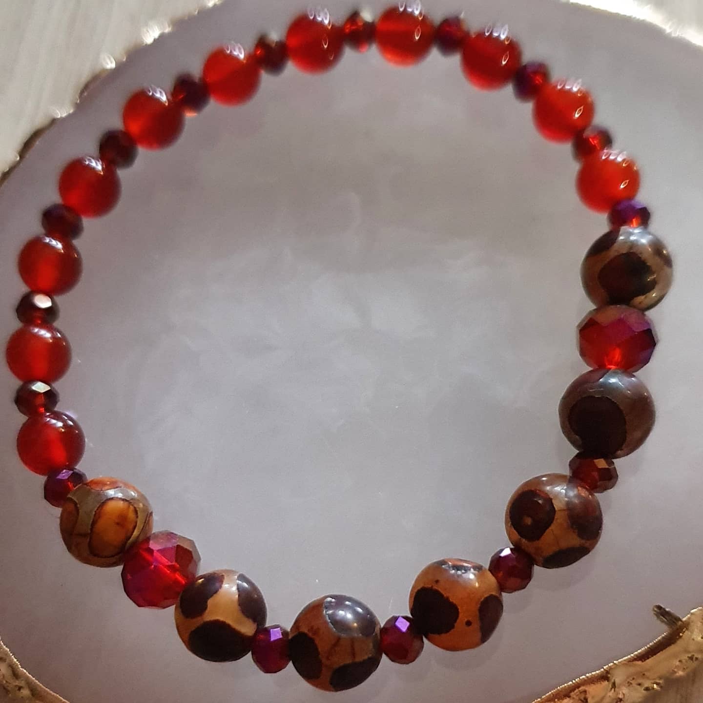 Cristal, agate rouge et Dzi. 4, 6 et 8mm.
