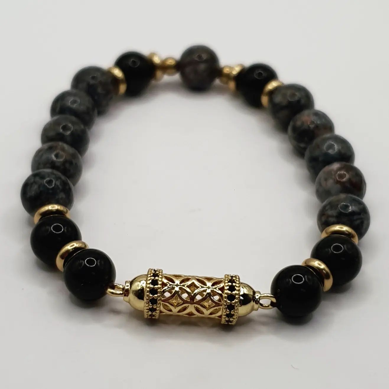 Pierre obsidienne et magnésite. 8mm.