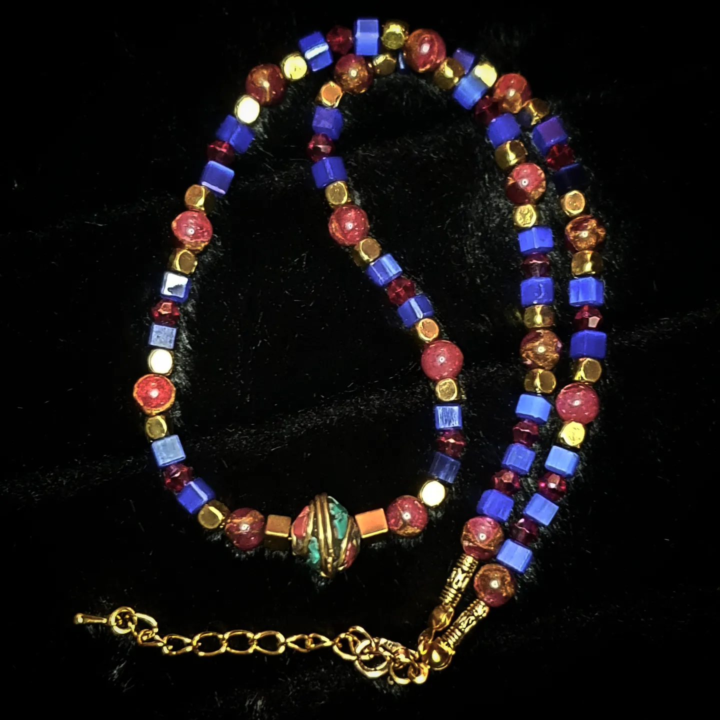Perle dentelle, oeil de chat AAA, perle tibétaine, cristal, hématite.