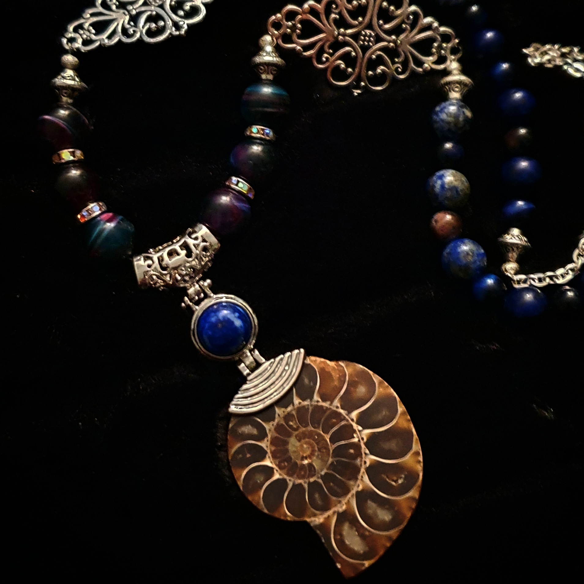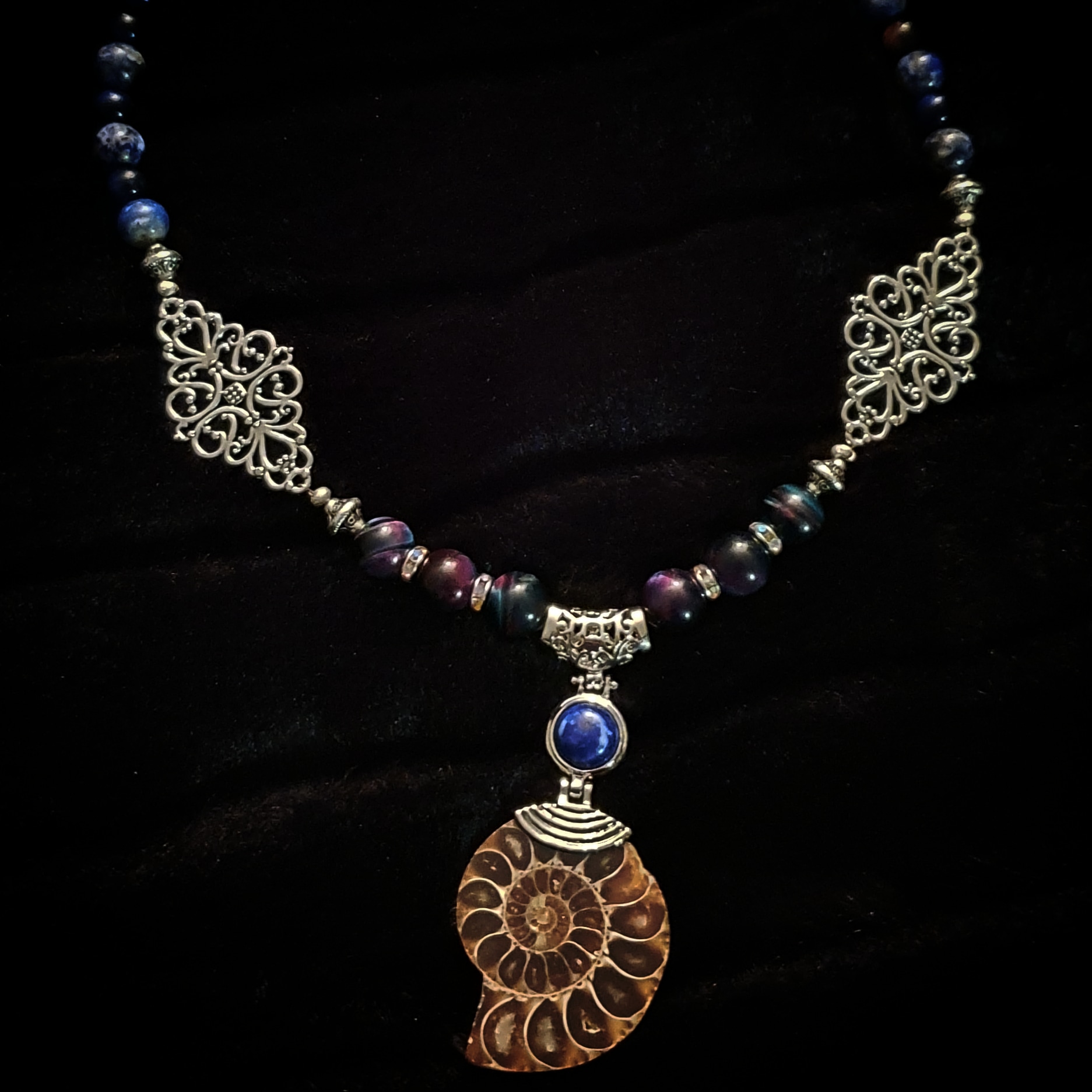 Collier Ammonite bleue.