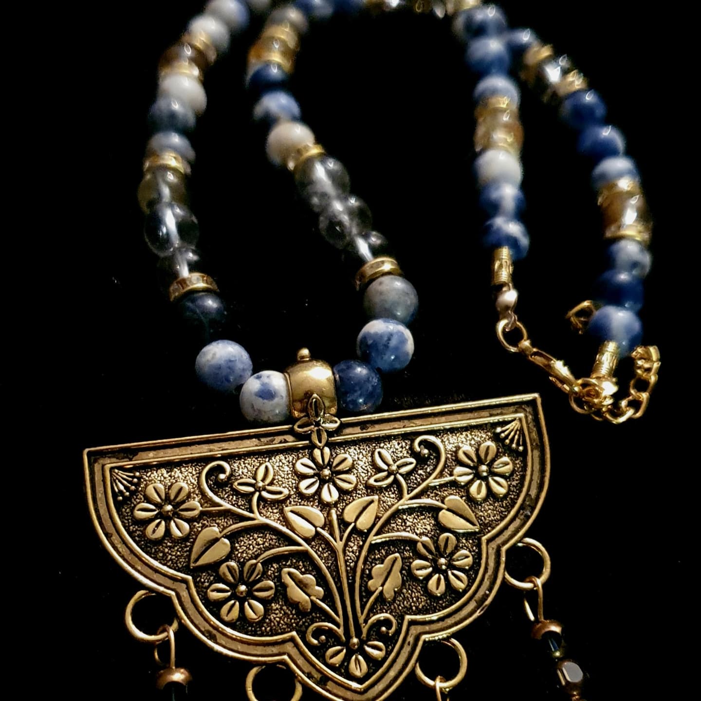 Sodalite, cristal de roche (AAA), verre, pendant opalite.