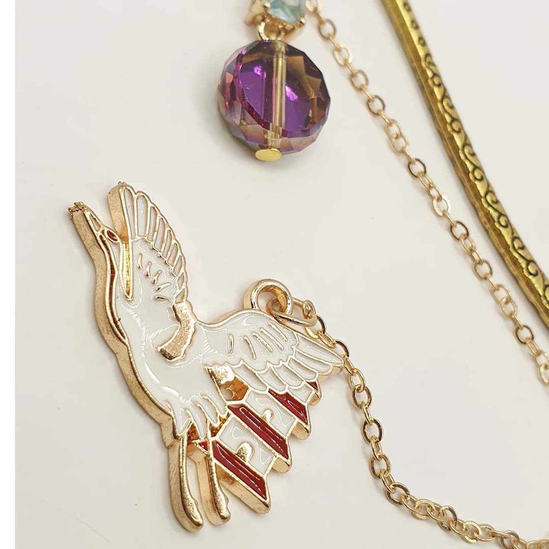 Cristaux et pendant métallique peint